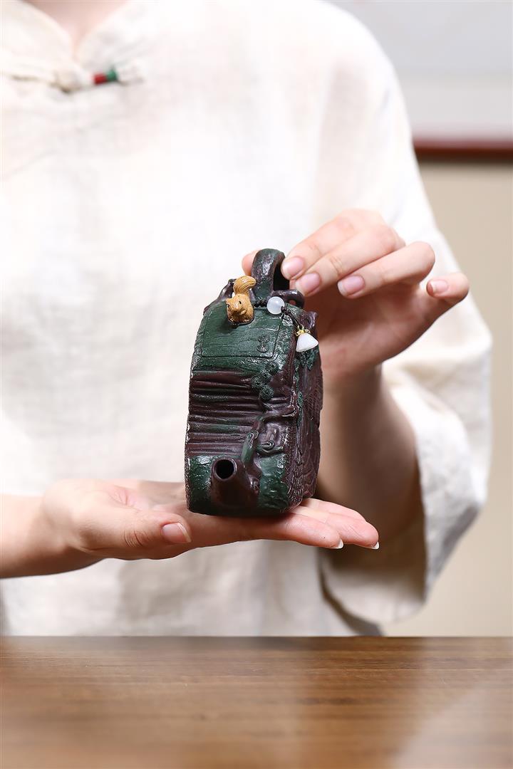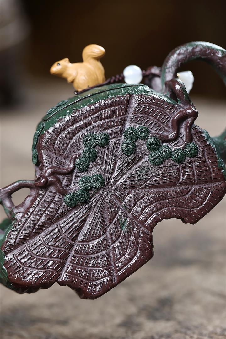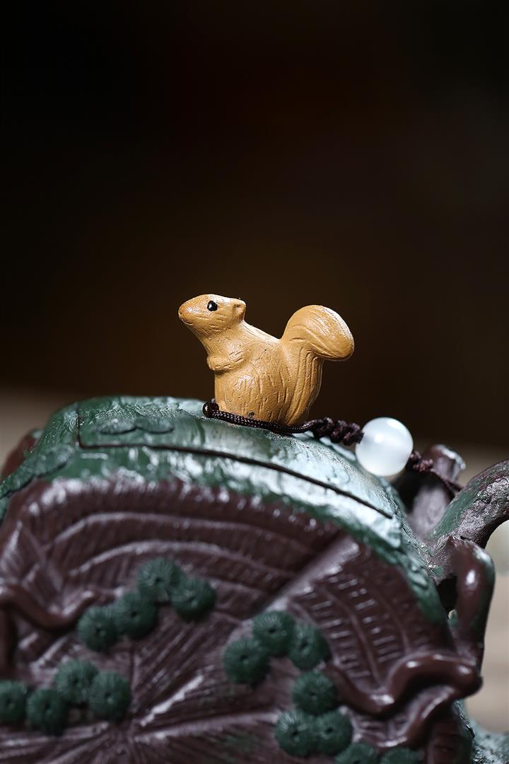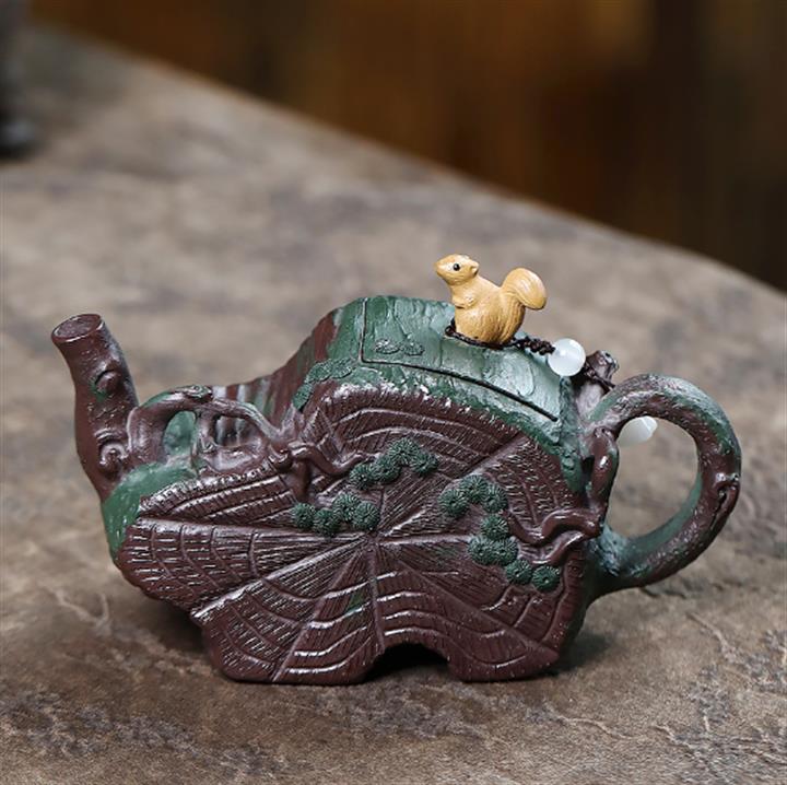 220cc紫泥+綠泥粉漿松鼠樹樁茶壺POT7994