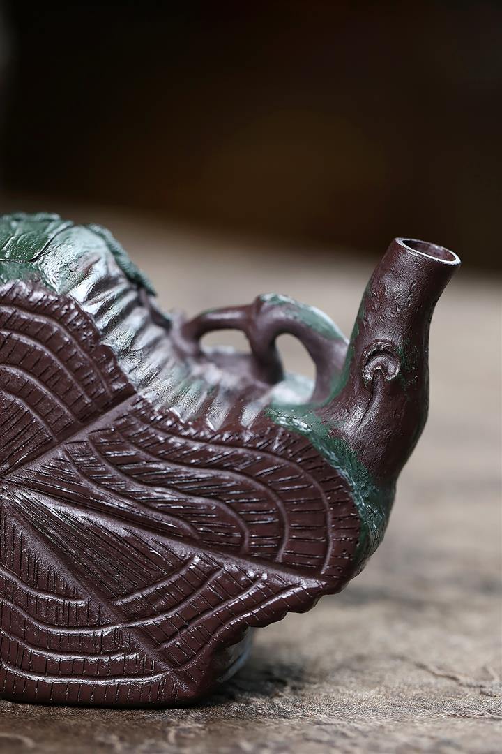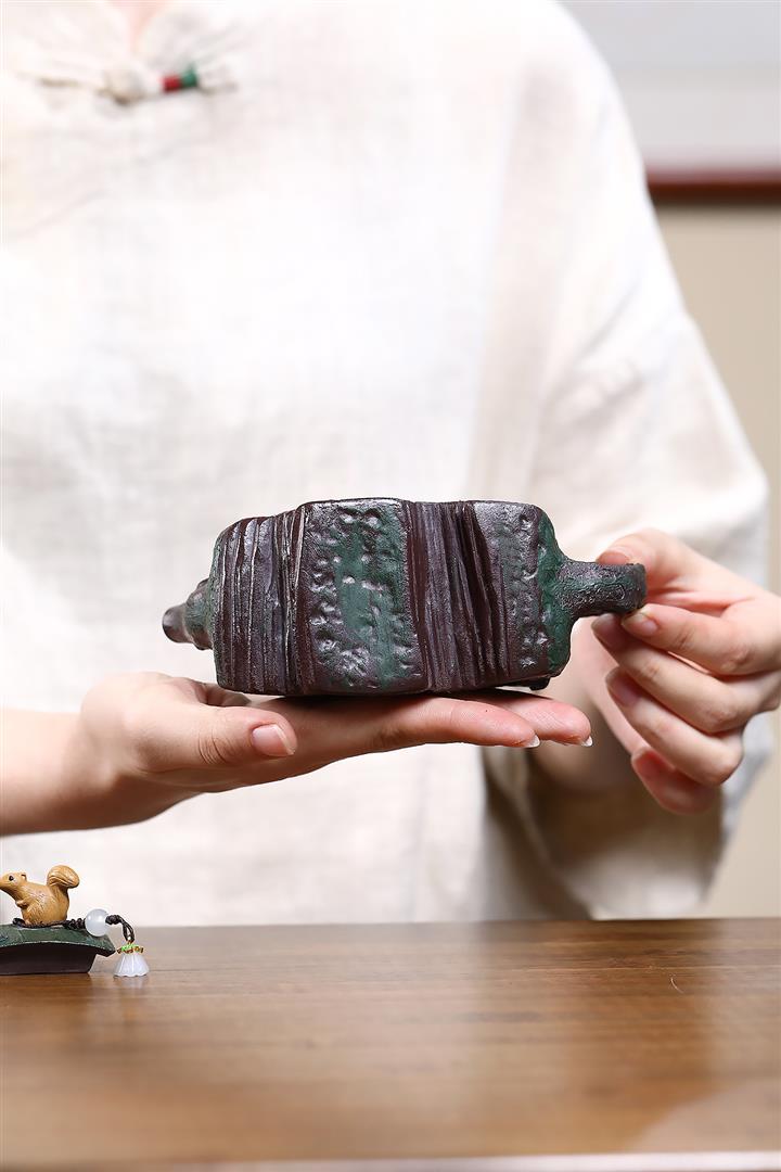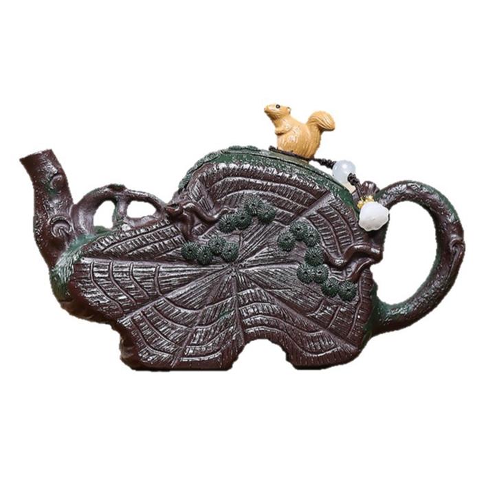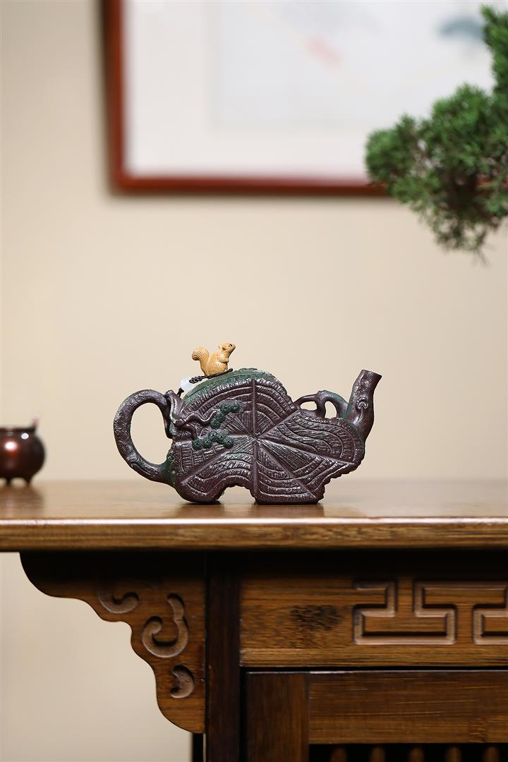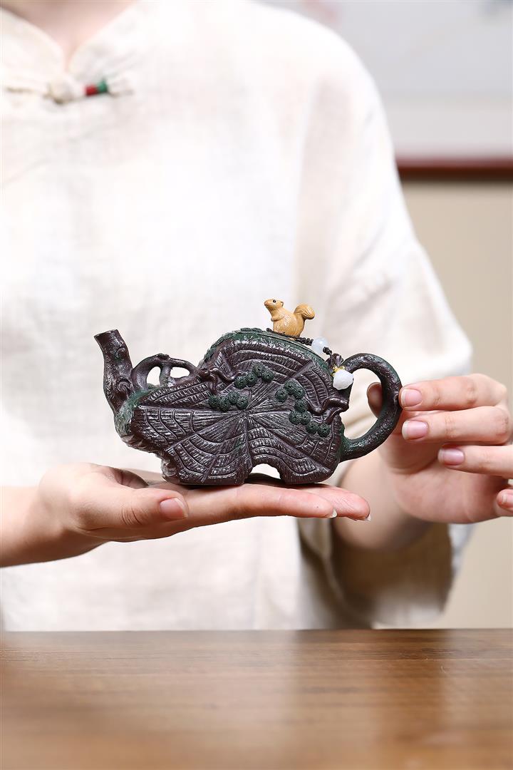 220cc紫泥+綠泥粉漿松鼠樹樁茶壺POT7994