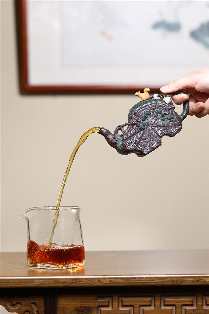 【泥料特點】砂土氣重,似淳實農民,日久使用,漸露鋒芒,養成變化,溫潤莊重。紫砂是壹種雙重氣孔結構的多孔性材質,氣孔微細,密度高。用紫砂壺沏茶,不失原味,且香不渙散,得茶之真香真味。紫砂使用越久,壺身色澤越發光亮照人,氣韻溫雅。紫砂壺長久使用器身會因撫摸擦拭,變得越發溫潤光澤。