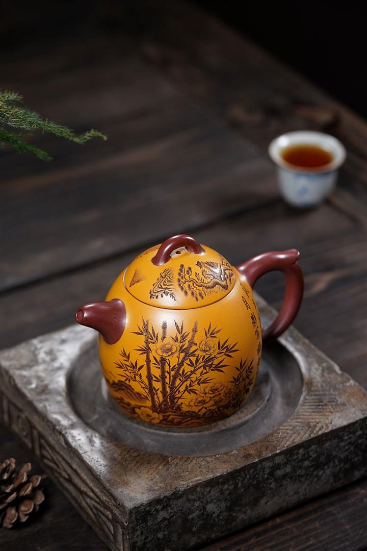 【作品介紹】此款壺形線條流暢,壺把,壺嘴,壺身壹氣呵成栩栩如生,是收藏把玩的好壺,泥料色澤古樸典雅,日久使用,漸露鋒芒,養成變化快,溫潤莊重,用其泡茶,使用的年代久,壺身就溫潤,泡出來的茶湯也就醇郁芳馨。
