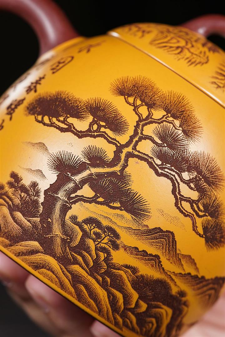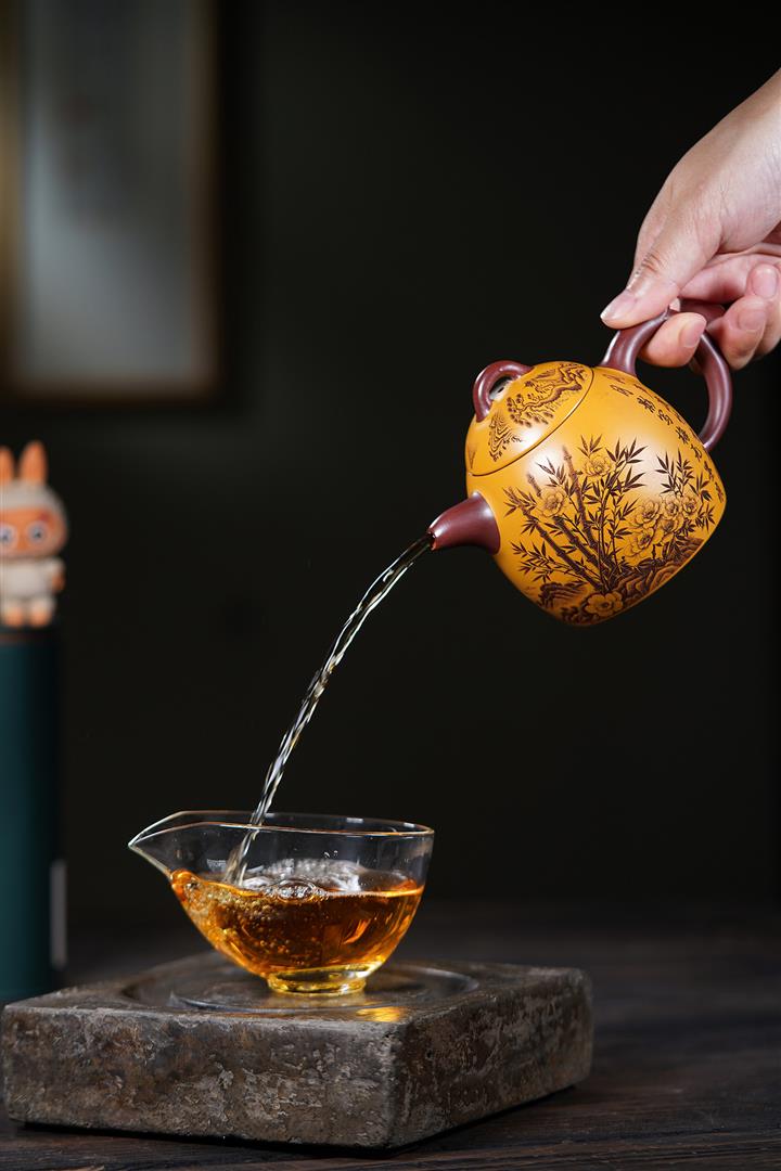 【泥料特點】砂土氣重,似淳實農民,日久使用,漸露鋒芒,養成變化,溫潤莊重。紫砂是壹種雙重氣孔結構的多孔性材質,氣孔微細,密度高。用紫砂壺沏茶,不失原味,且香不渙散,得茶之真香真味。紫砂使用越久,壺身色澤越發光亮照人,氣韻溫雅。紫砂壺長久使用器身會因撫摸擦拭,變得越發溫潤光澤。