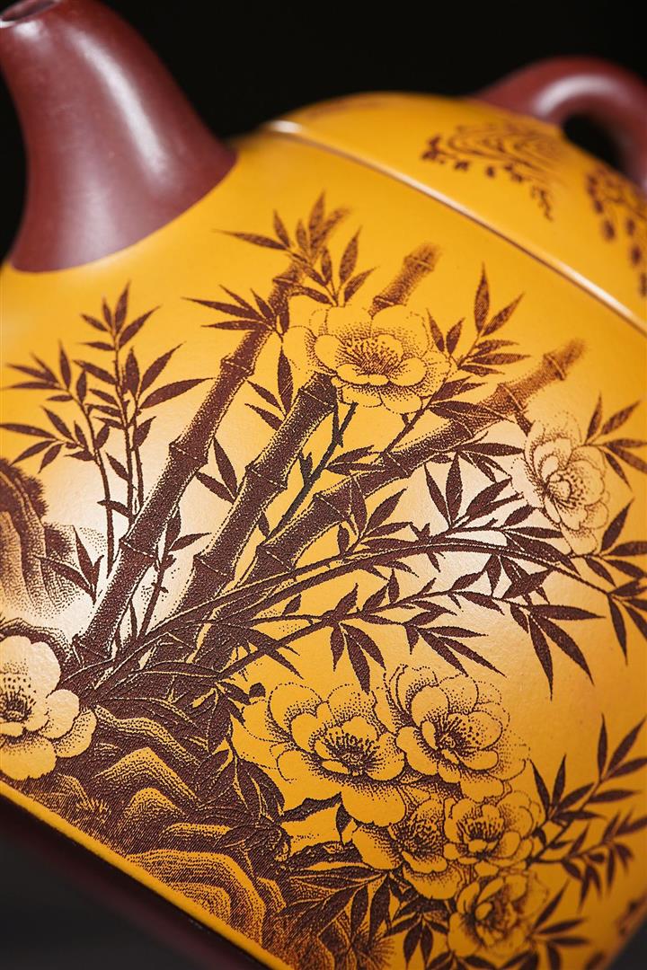 150cc原礦紫泥金銀錯灑金歡喜石瓢茶壺POT8010