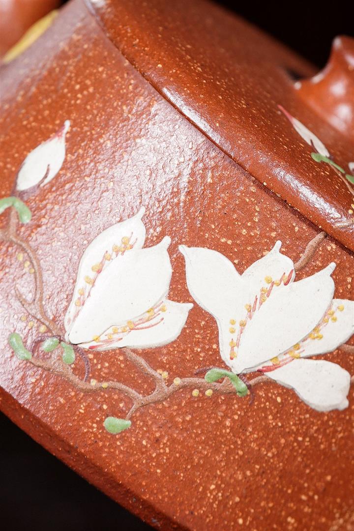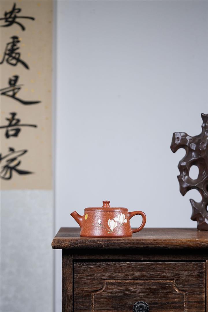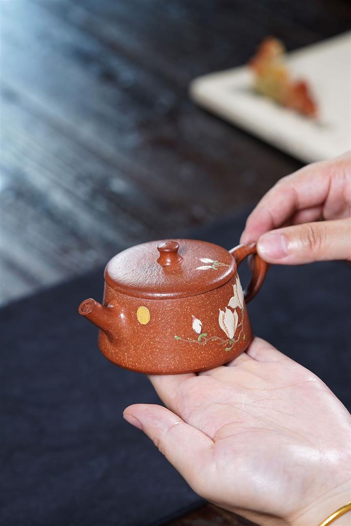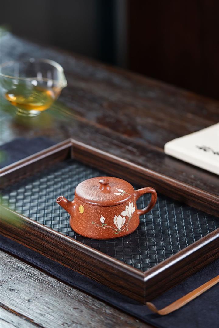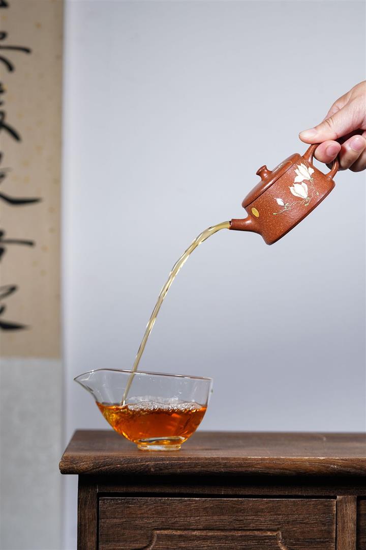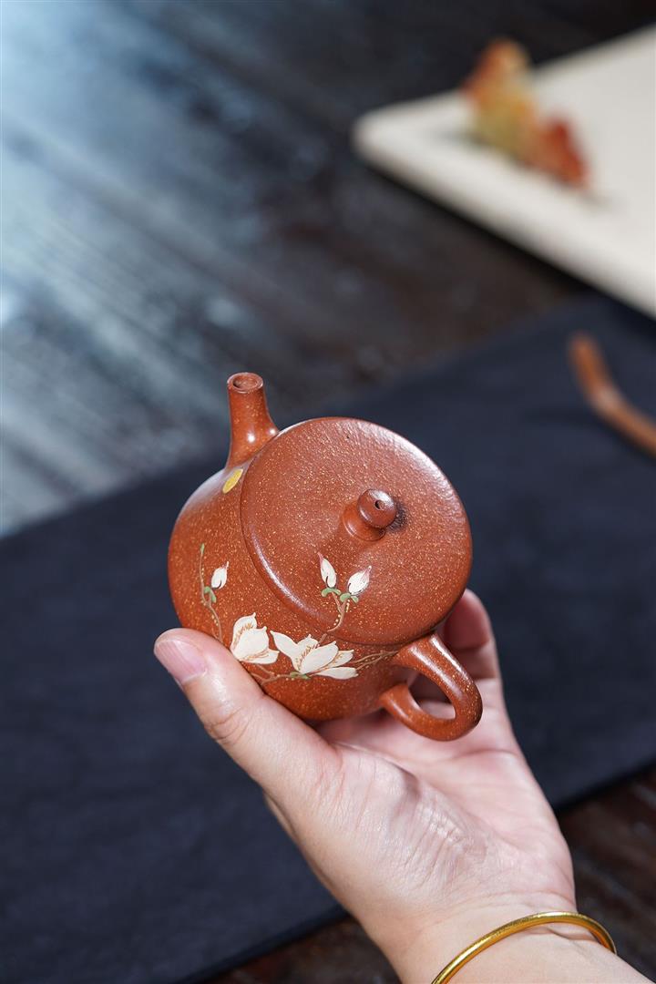 【泥料特點】砂土氣重,似淳實農民,日久使用,漸露鋒芒,養成變化,溫潤莊重。紫砂是壹種雙重氣孔結構的多孔性材質,氣孔微細,密度高。用紫砂壺沏茶,不失原味,且香不渙散,得茶之真香真味。紫砂使用越久,壺身色澤越發光亮照人,氣韻溫雅。紫砂壺長久使用器身會因撫摸擦拭,變得越發溫潤光澤。