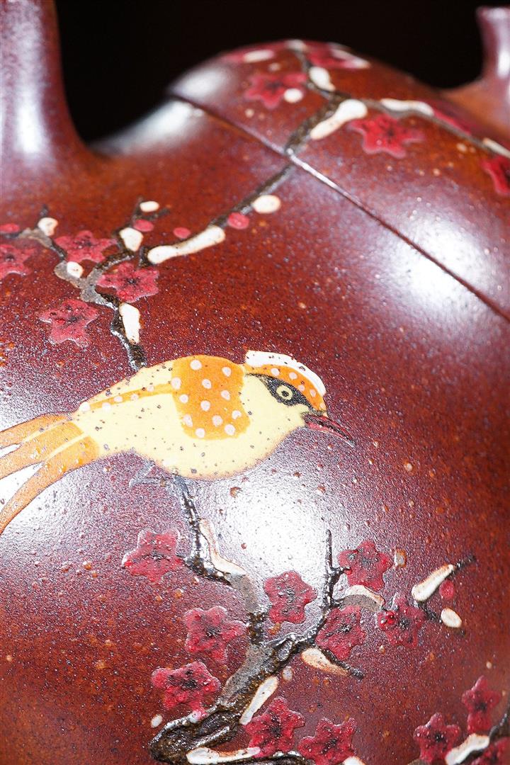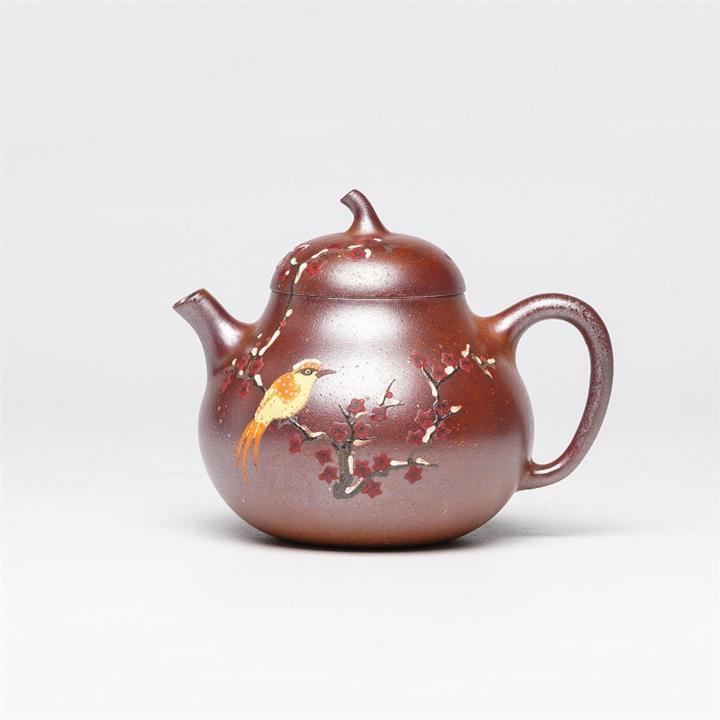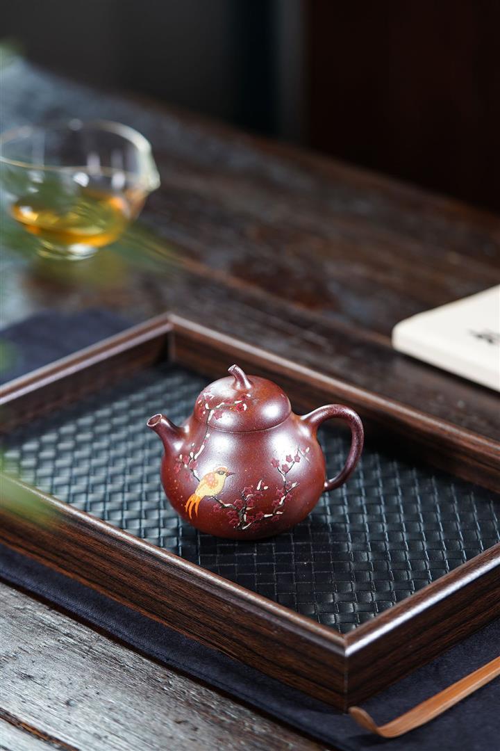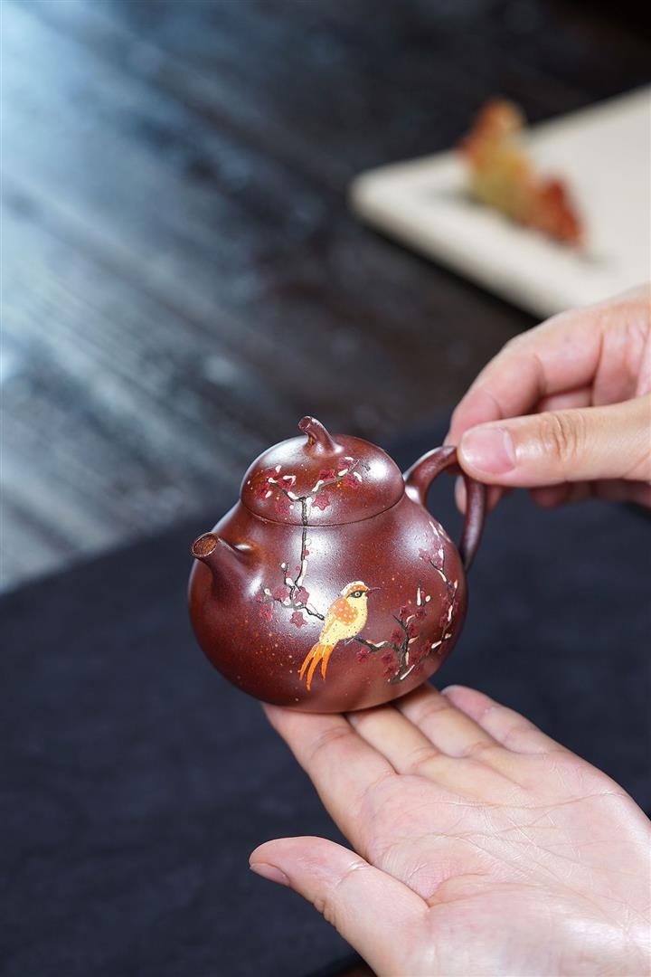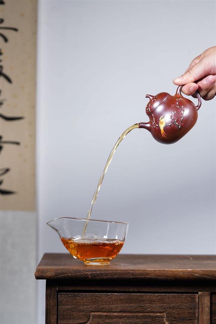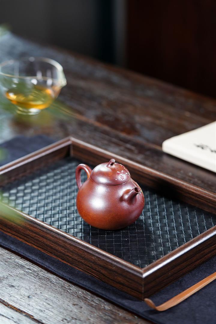 【泥料特點】砂土氣重,似淳實農民,日久使用,漸露鋒芒,養成變化,溫潤莊重。紫砂是壹種雙重氣孔結構的多孔性材質,氣孔微細,密度高。用紫砂壺沏茶,不失原味,且香不渙散,得茶之真香真味。紫砂使用越久,壺身色澤越發光亮照人,氣韻溫雅。紫砂壺長久使用器身會因撫摸擦拭,變得越發溫潤光澤。