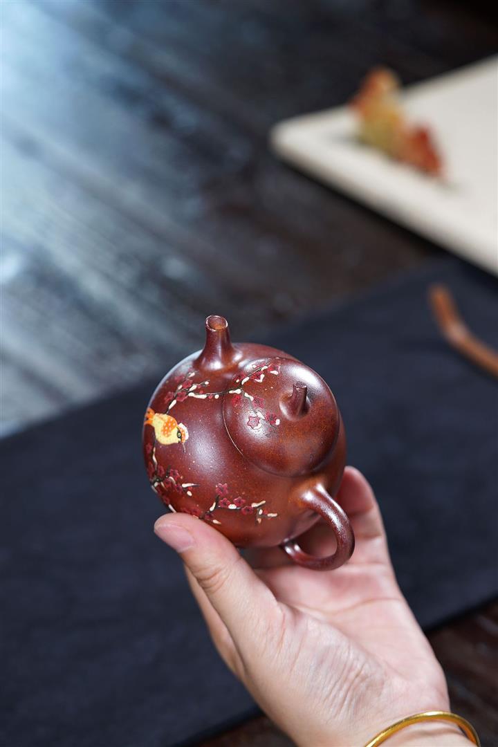 【作品介紹】此款壺形線條流暢,壺把,壺嘴,壺身壹氣呵成栩栩如生,是收藏把玩的好壺,泥料色澤古樸典雅,日久使用,漸露鋒芒,養成變化快,溫潤莊重,用其泡茶,使用的年代久,壺身就溫潤,泡出來的茶湯也就醇郁芳馨。