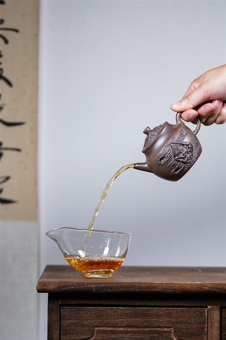 【泥料特點】砂土氣重,似淳實農民,日久使用,漸露鋒芒,養成變化,溫潤莊重。紫砂是壹種雙重氣孔結構的多孔性材質,氣孔微細,密度高。用紫砂壺沏茶,不失原味,且香不渙散,得茶之真香真味。紫砂使用越久,壺身色澤越發光亮照人,氣韻溫雅。紫砂壺長久使用器身會因撫摸擦拭,變得越發溫潤光澤。