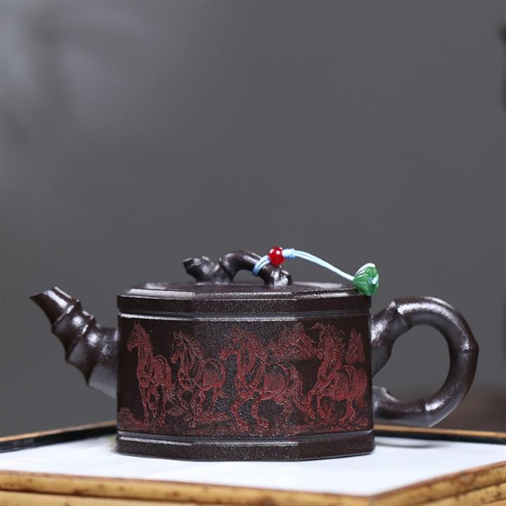 300cc原礦石黃泥山河駿馬竹段茶壺POT8028