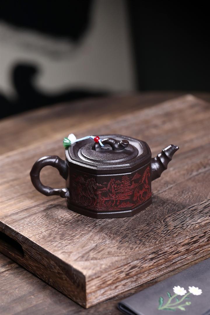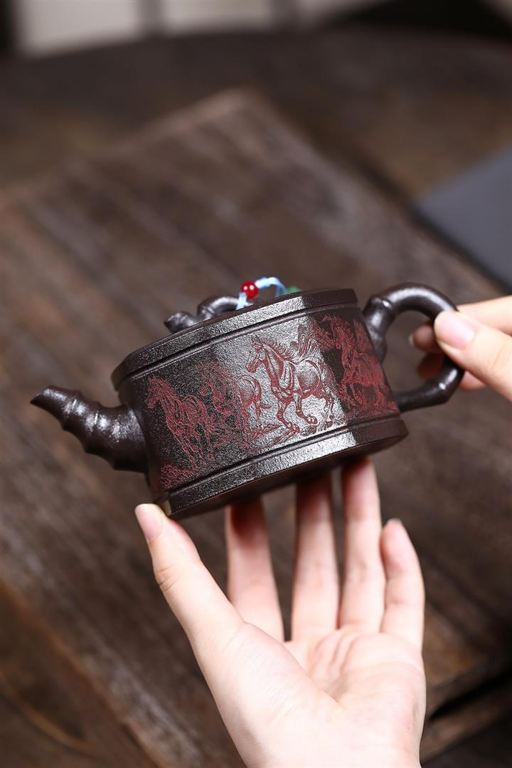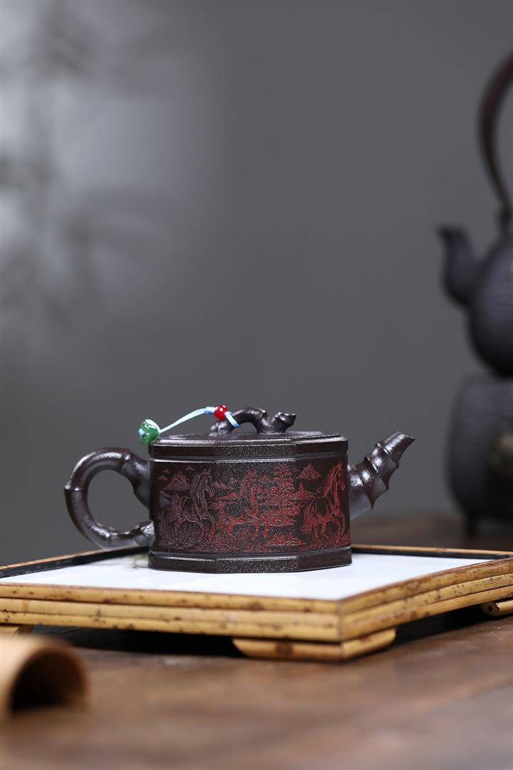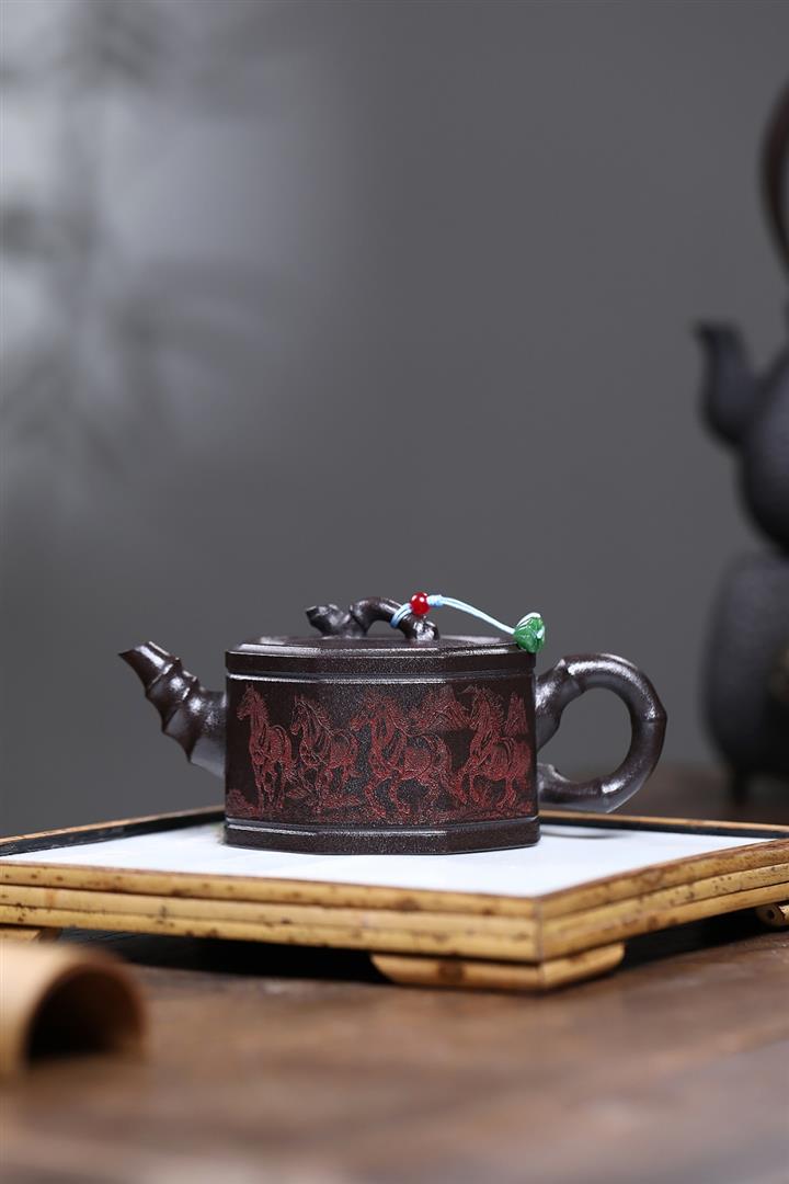 300cc原礦石黃泥山河駿馬竹段茶壺POT8028