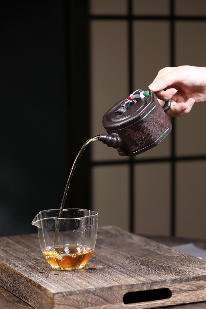 【作品介紹】此款壺形線條流暢,壺把,壺嘴,壺身壹氣呵成栩栩如生,是收藏把玩的好壺,泥料色澤古樸典雅,日久使用,漸露鋒芒,養成變化快,溫潤莊重,用其泡茶,使用的年代久,壺身就溫潤,泡出來的茶湯也就醇郁芳馨。