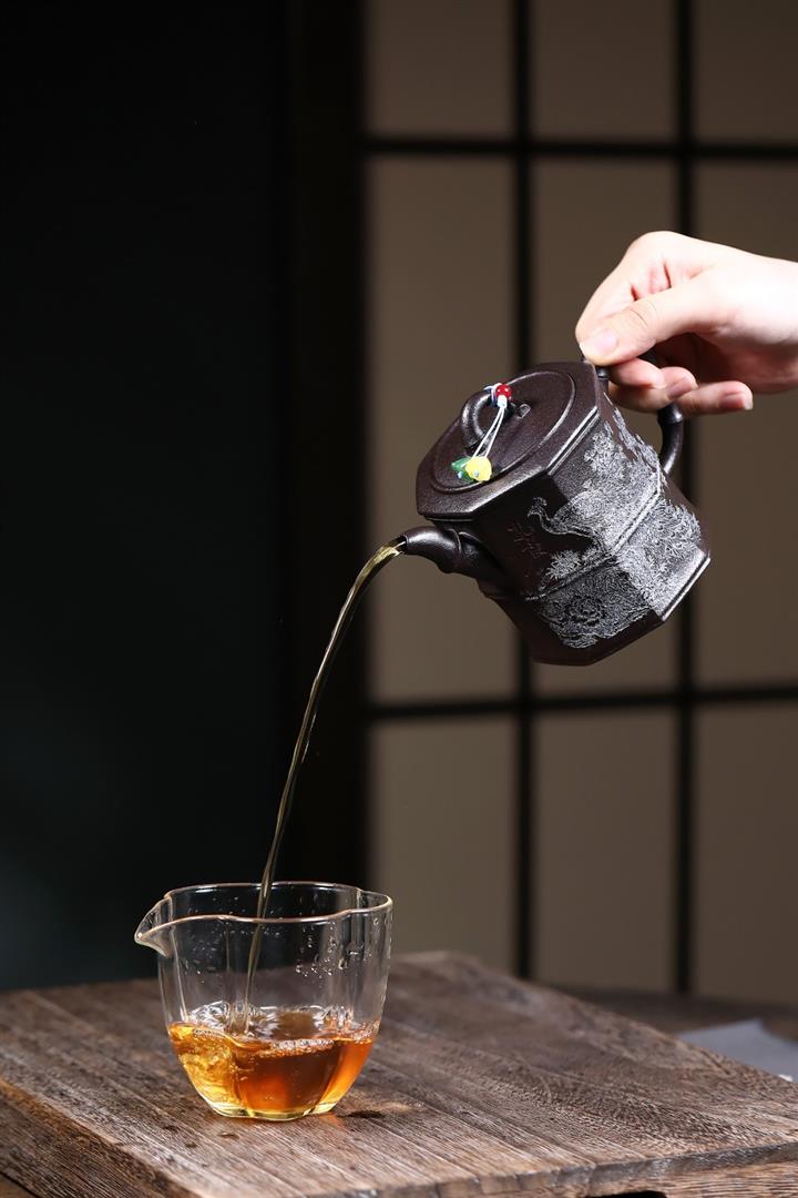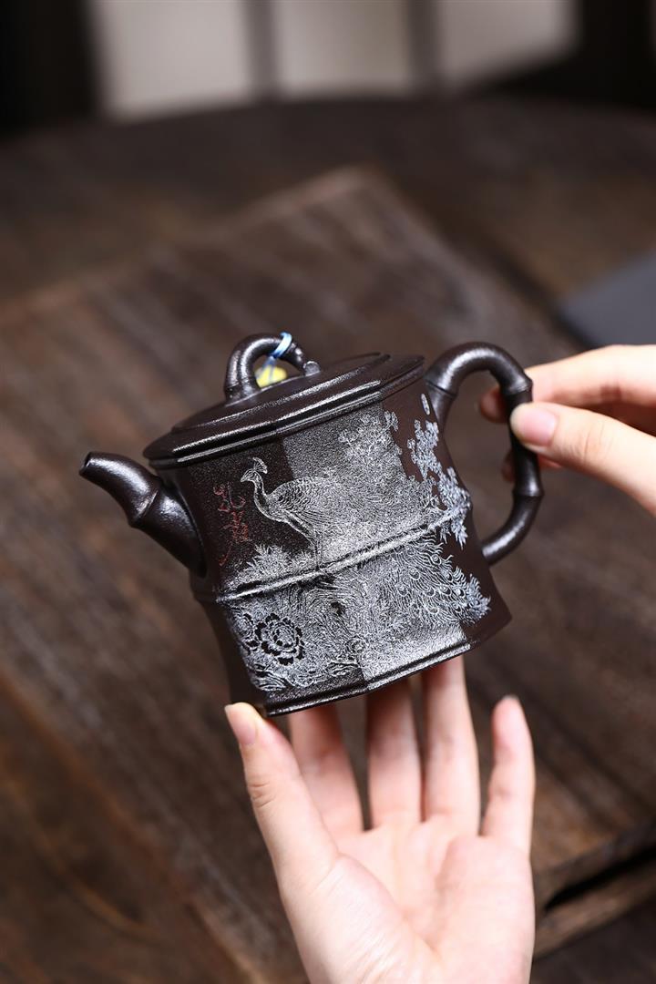 【作品介紹】此款壺形線條流暢,壺把,壺嘴,壺身壹氣呵成栩栩如生,是收藏把玩的好壺,泥料色澤古樸典雅,日久使用,漸露鋒芒,養成變化快,溫潤莊重,用其泡茶,使用的年代久,壺身就溫潤,泡出來的茶湯也就醇郁芳馨。