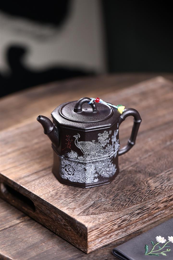 180cc原礦大紅袍雙色花鳥漢鐸茶壺POT8033
