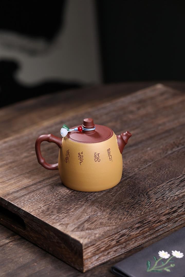 180cc原礦大紅袍雙色花鳥漢鐸茶壺POT8033