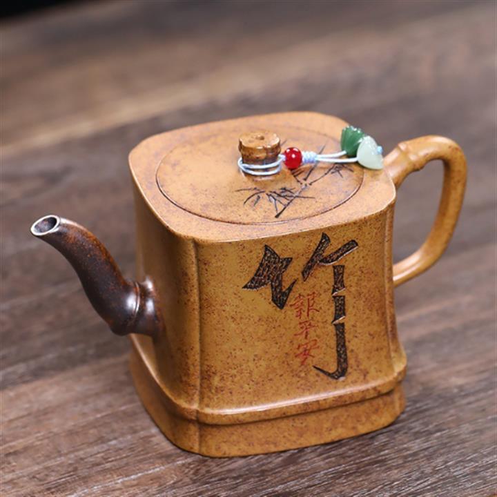 250cc原礦龍骨金砂柴燒勁竹四方茶壺POT8045