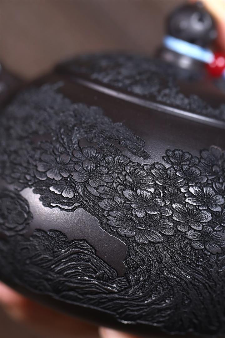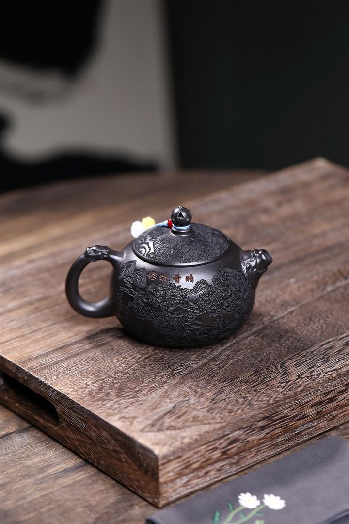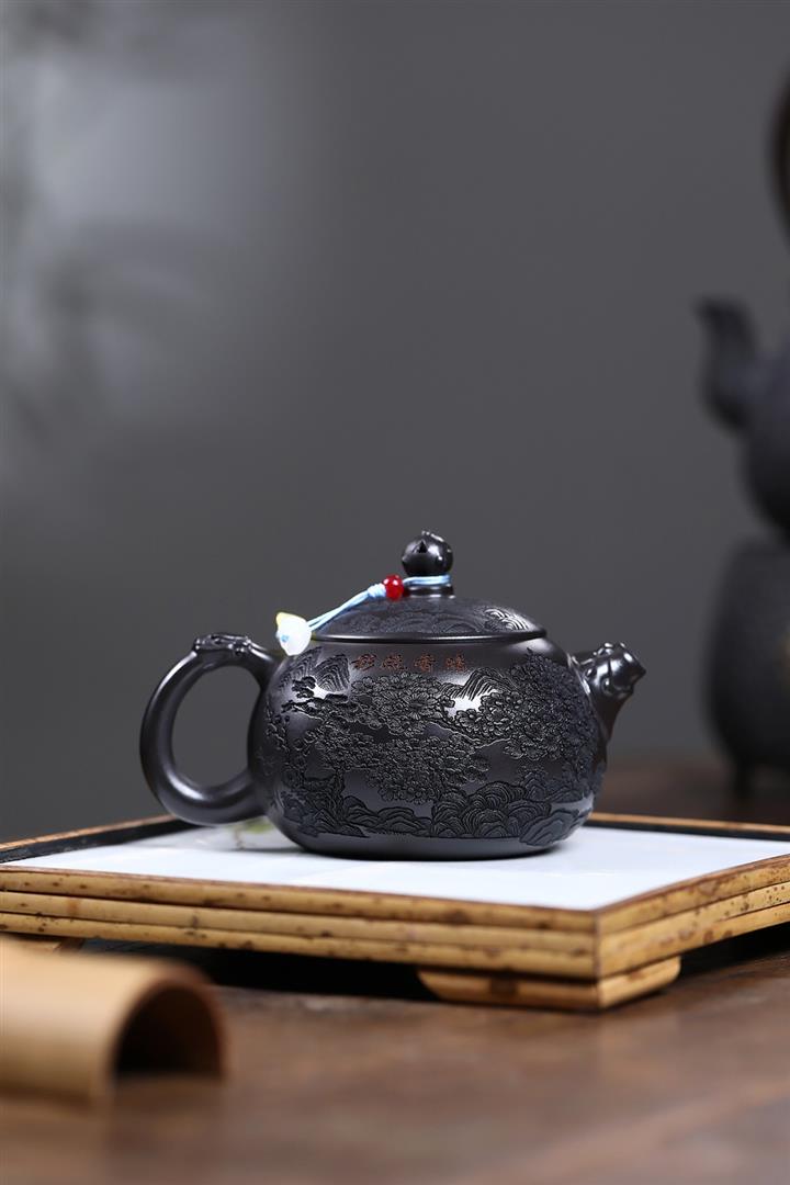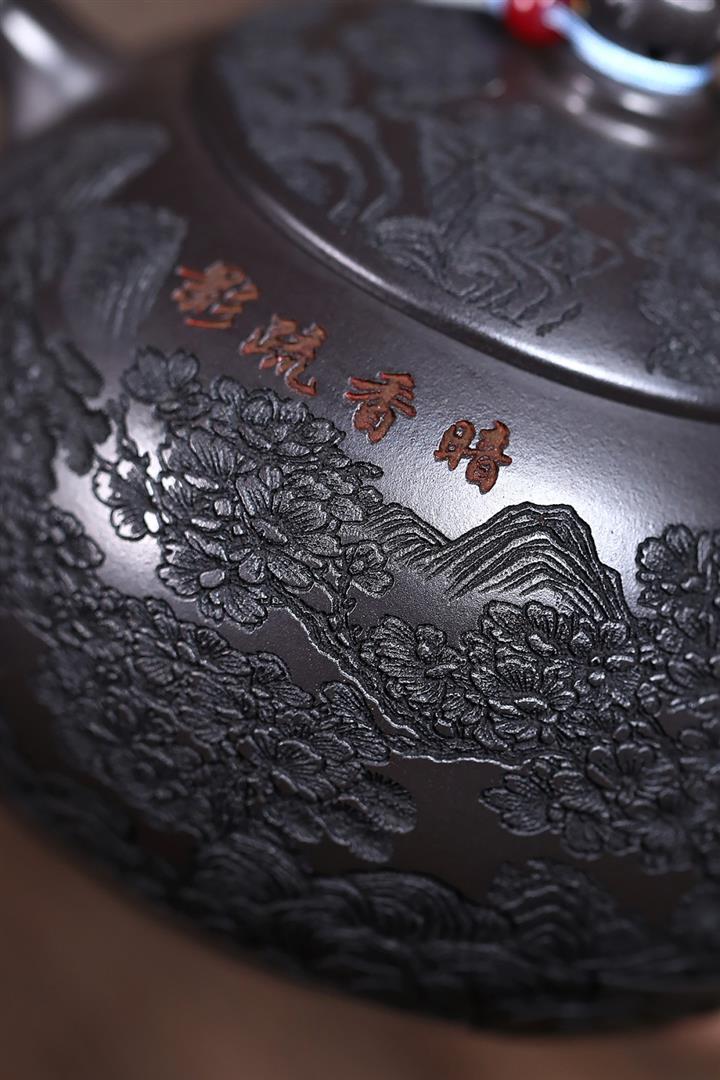 360cc原礦龍血砂雙色風竹琴韻茶壺POT8046