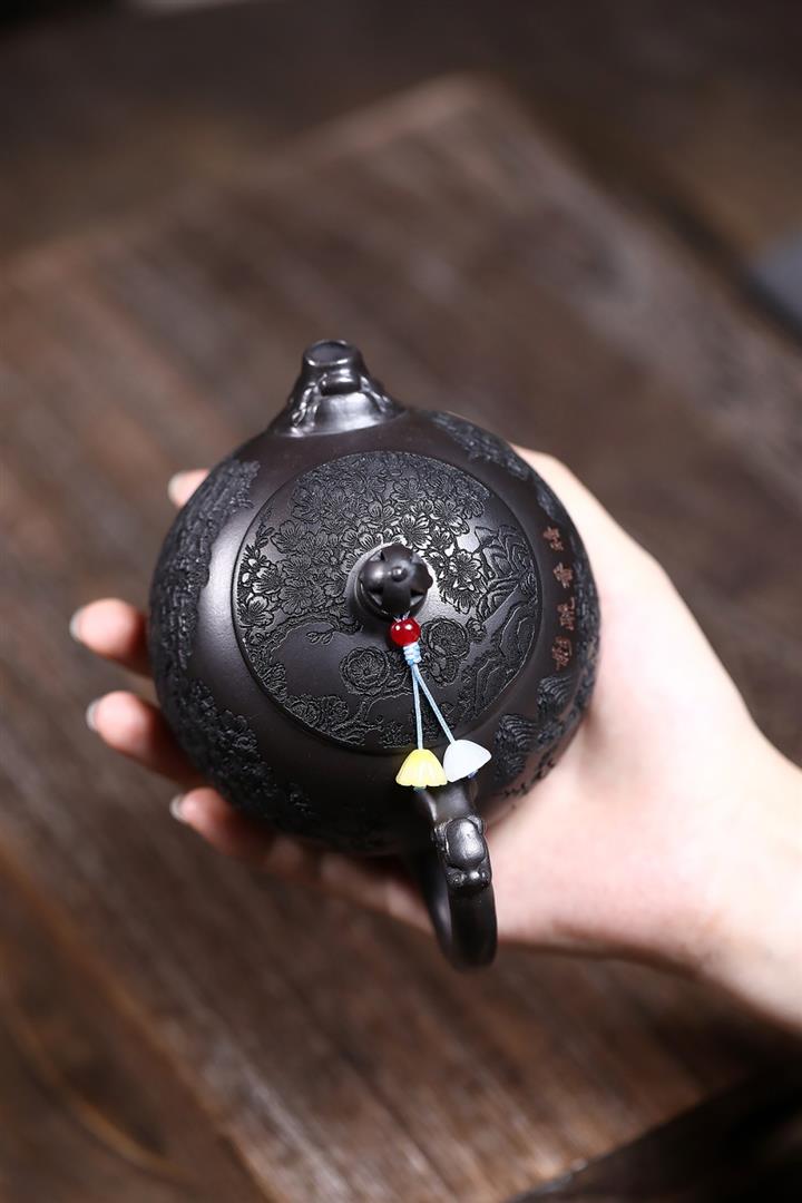 500cc原礦古銅泥浮雕龍鳳呈祥茶壺POT8040