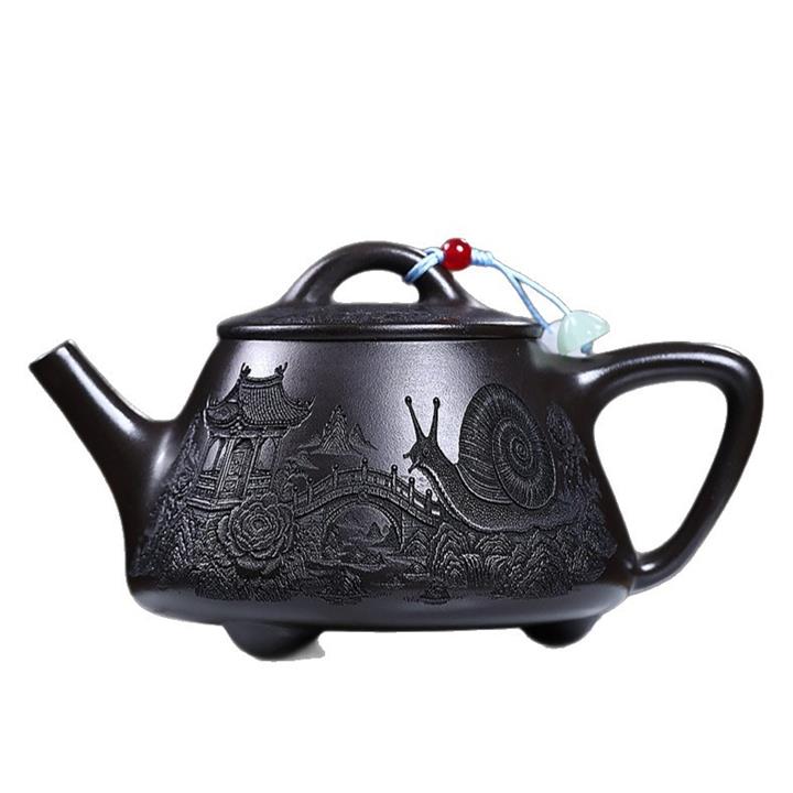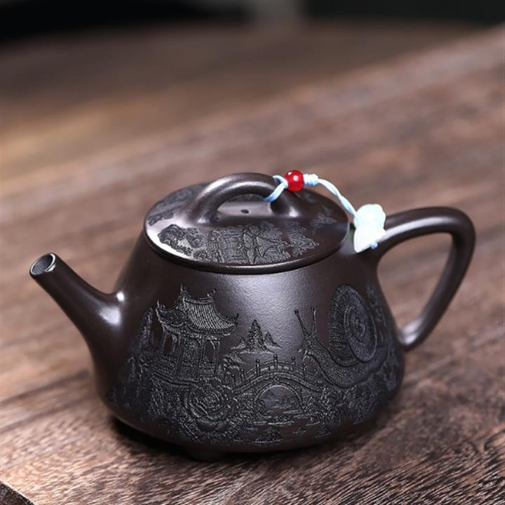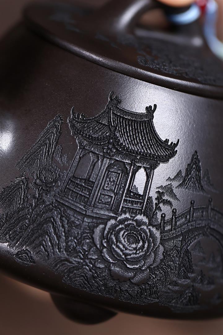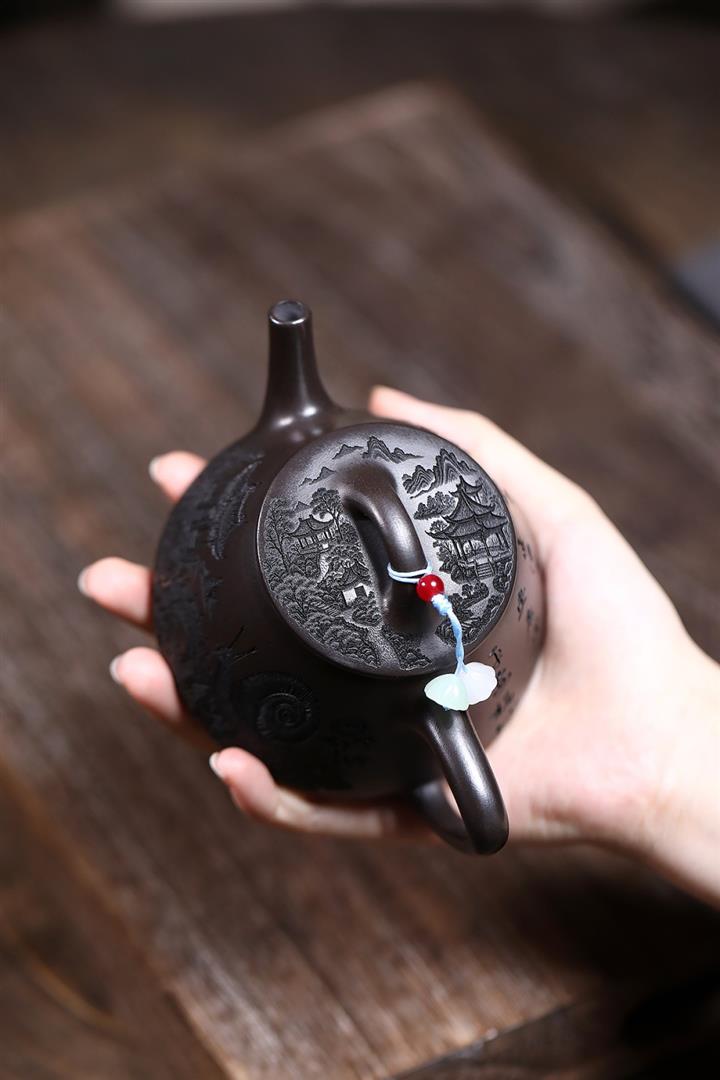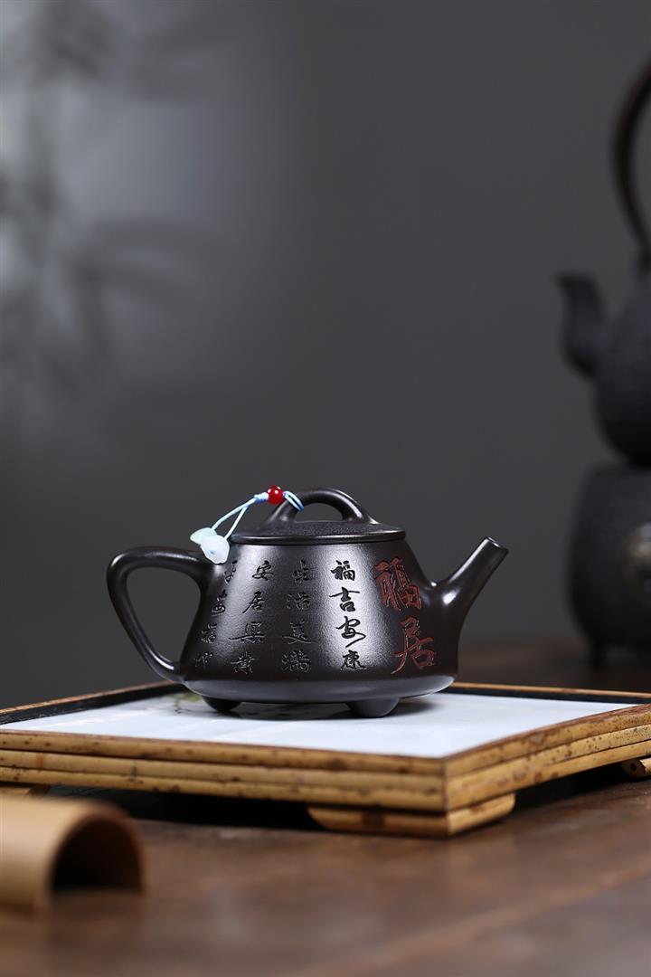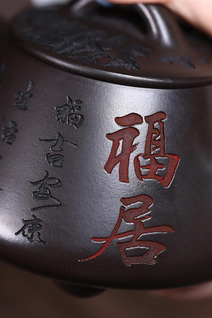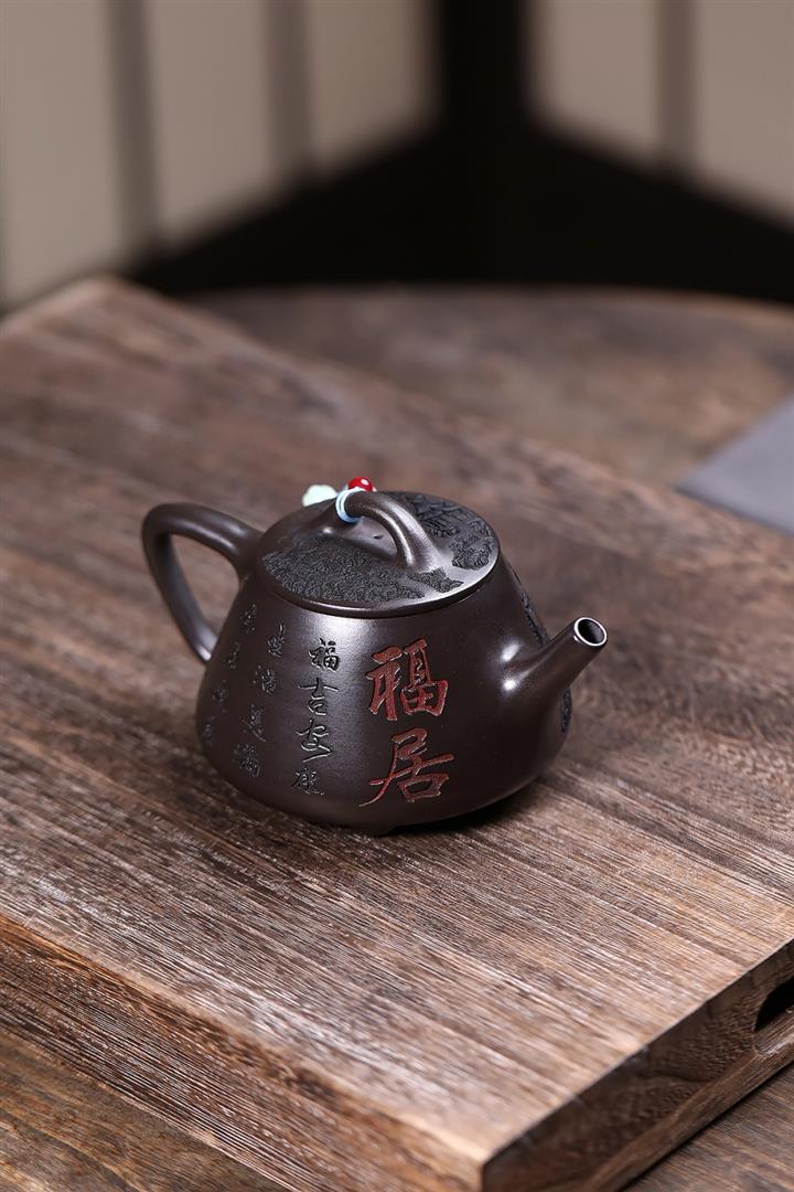 360cc原礦龍血砂雙色風竹琴韻茶壺POT8046
