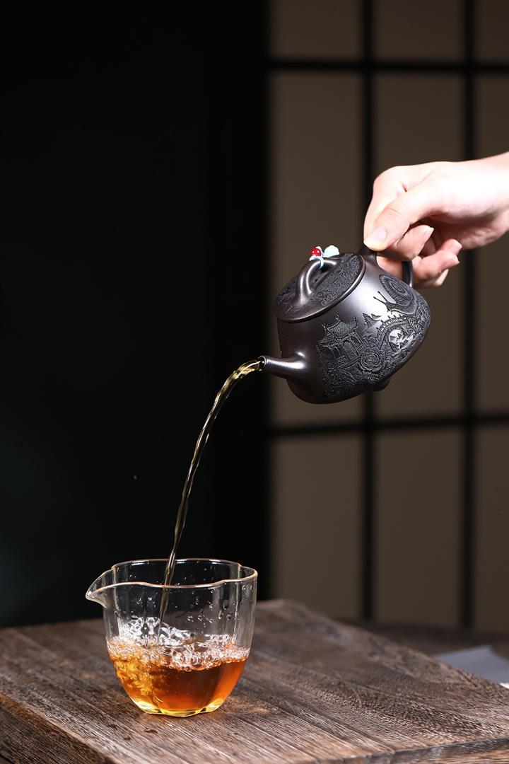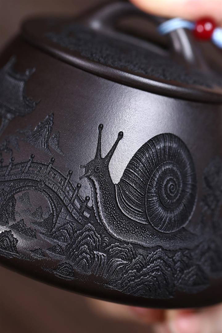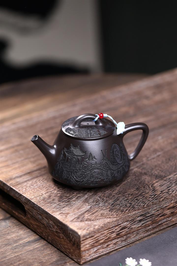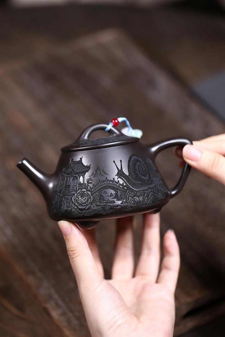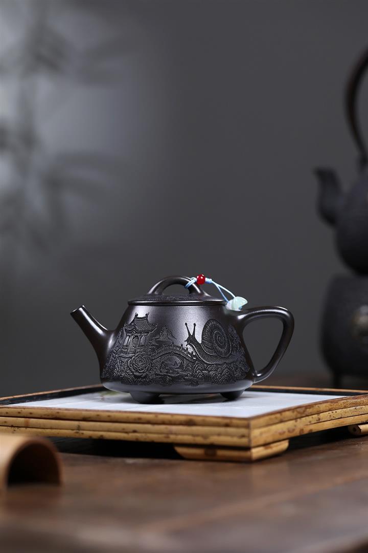 【作品介紹】此款壺形線條流暢,壺把,壺嘴,壺身壹氣呵成栩栩如生,是收藏把玩的好壺,泥料色澤古樸典雅,日久使用,漸露鋒芒,養成變化快,溫潤莊重,用其泡茶,使用的年代久,壺身就溫潤,泡出來的茶湯也就醇郁芳馨。