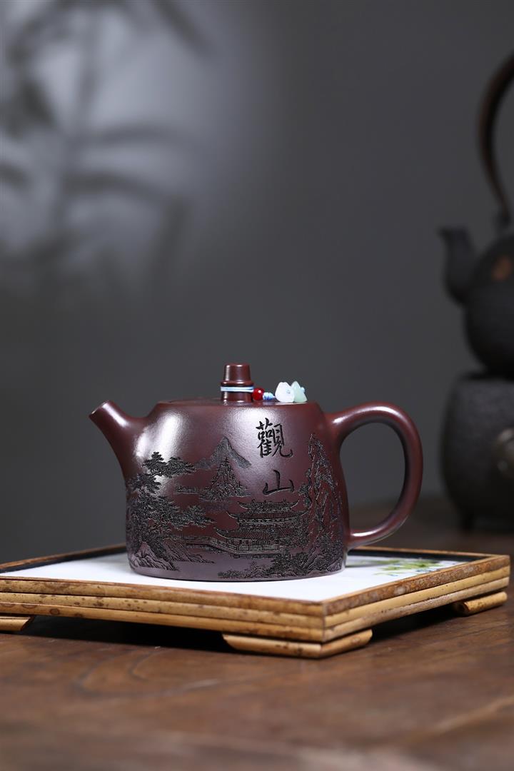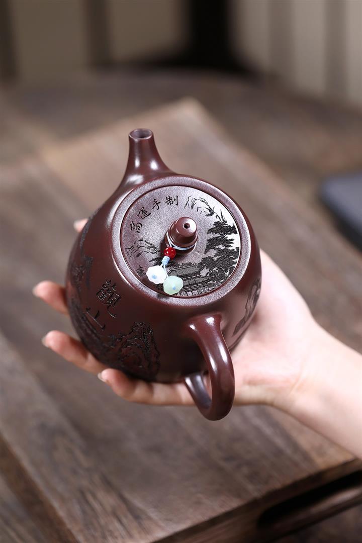 200cc原礦紫泥刻繪梅香漢瓦茶壺POT8049