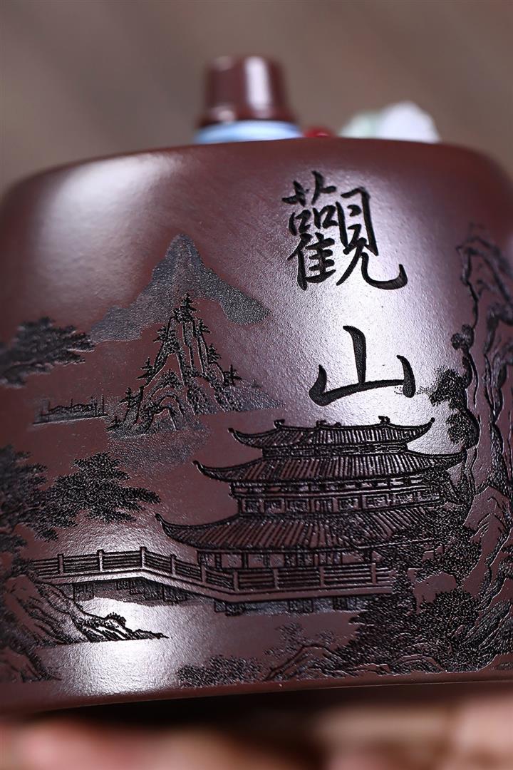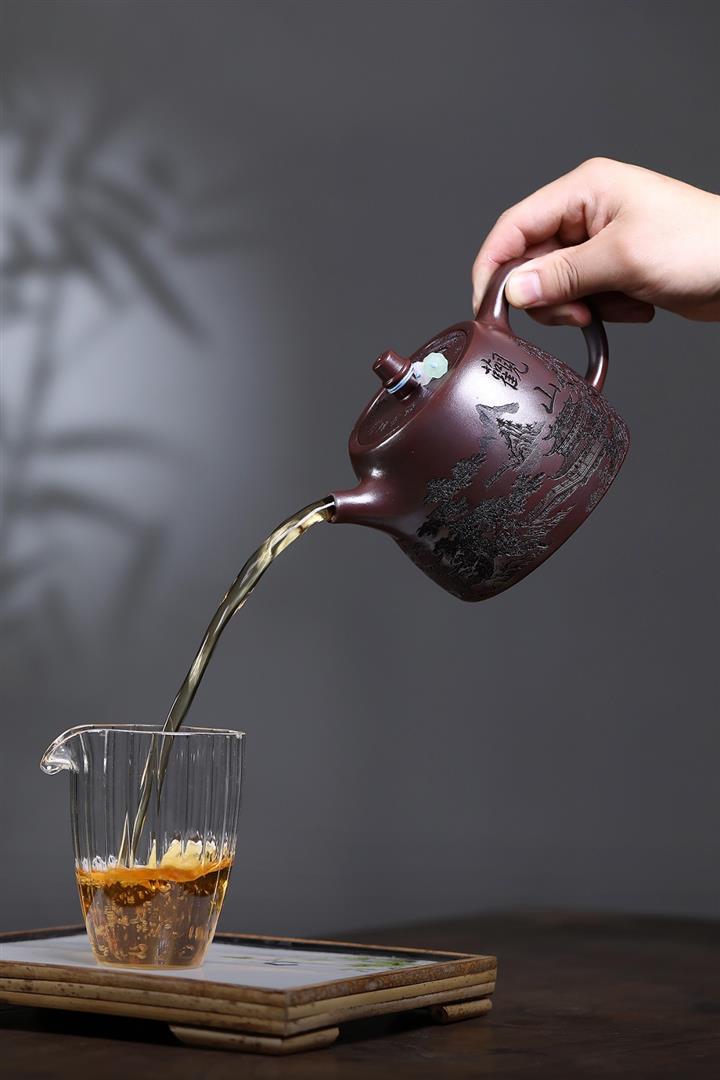 【泥料特點】砂土氣重,似淳實農民,日久使用,漸露鋒芒,養成變化,溫潤莊重。紫砂是壹種雙重氣孔結構的多孔性材質,氣孔微細,密度高。用紫砂壺沏茶,不失原味,且香不渙散,得茶之真香真味。紫砂使用越久,壺身色澤越發光亮照人,氣韻溫雅。紫砂壺長久使用器身會因撫摸擦拭,變得越發溫潤光澤。