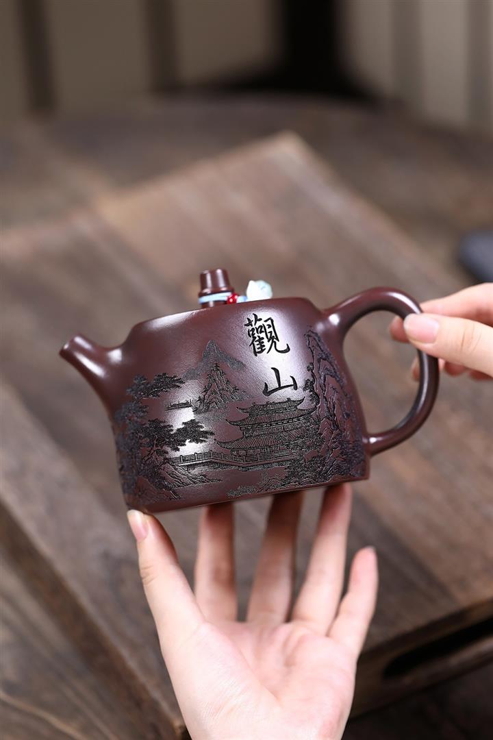 【作品介紹】此款壺形線條流暢,壺把,壺嘴,壺身壹氣呵成栩栩如生,是收藏把玩的好壺,泥料色澤古樸典雅,日久使用,漸露鋒芒,養成變化快,溫潤莊重,用其泡茶,使用的年代久,壺身就溫潤,泡出來的茶湯也就醇郁芳馨。