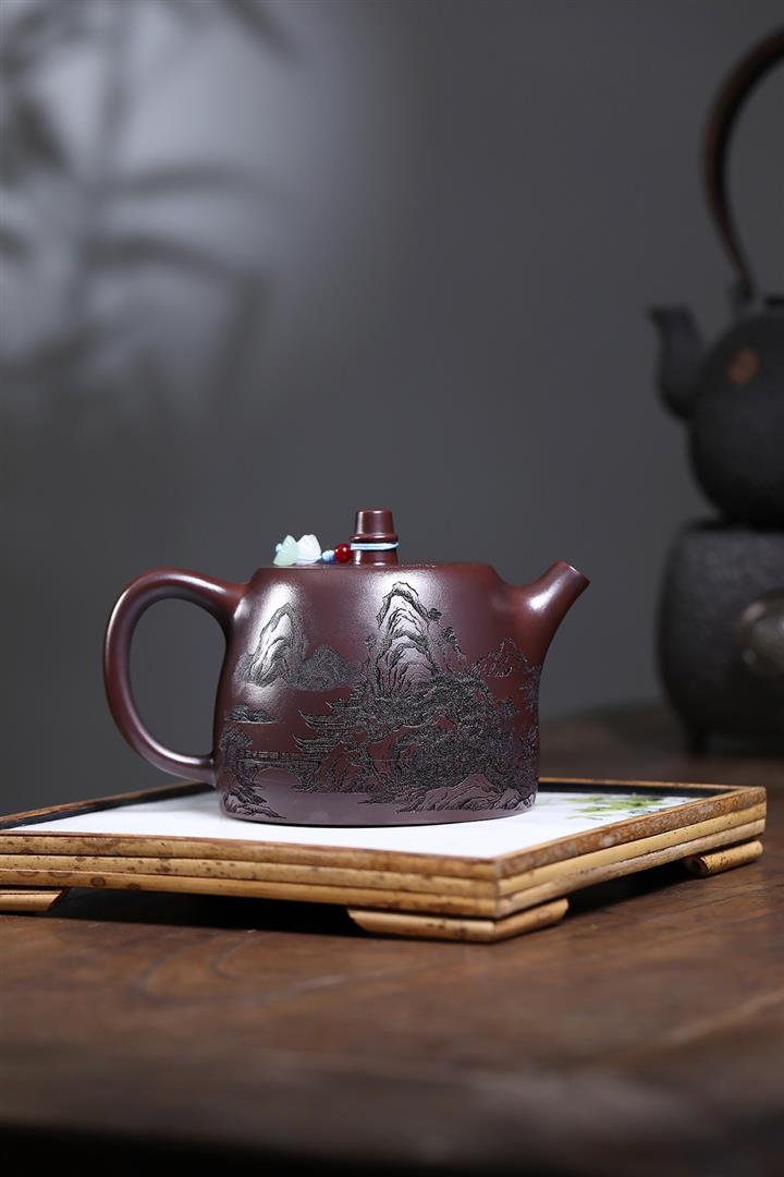 360cc原礦龍血砂雙色風竹琴韻茶壺POT8046