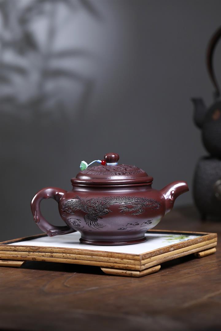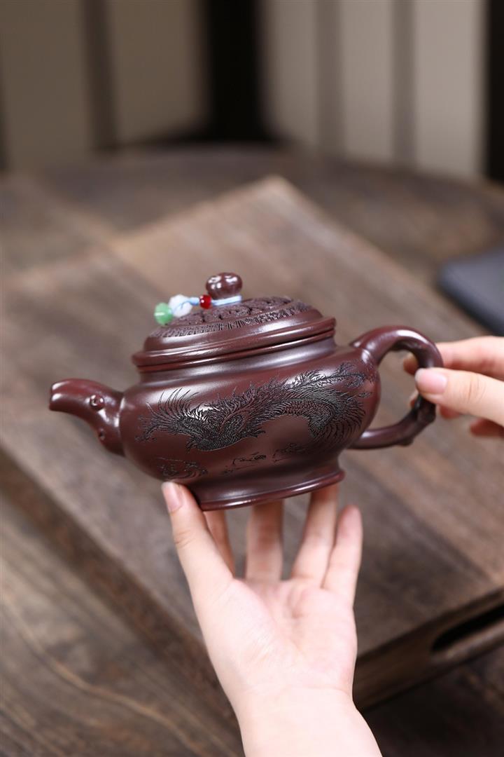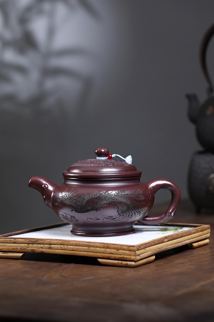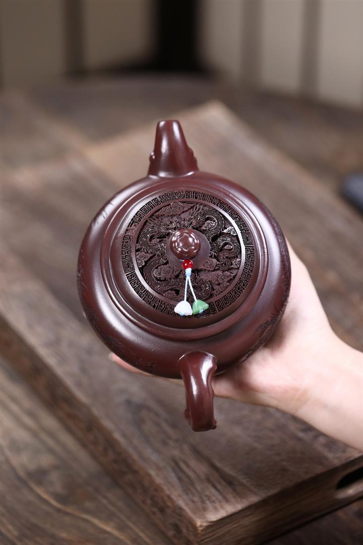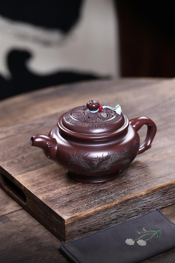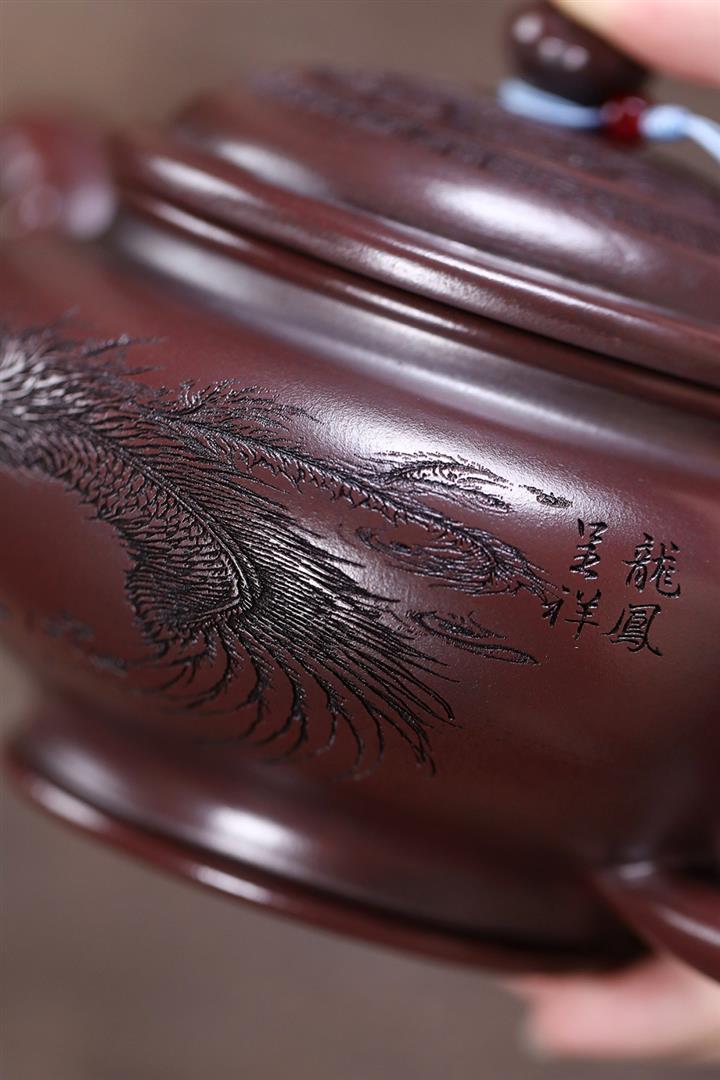 500cc原礦古銅泥浮雕龍鳳呈祥茶壺POT8040