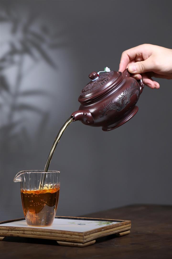 360cc原礦龍血砂雙色風竹琴韻茶壺POT8046