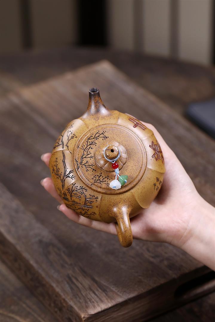 200cc原礦紫泥刻繪梅香漢瓦茶壺POT8049