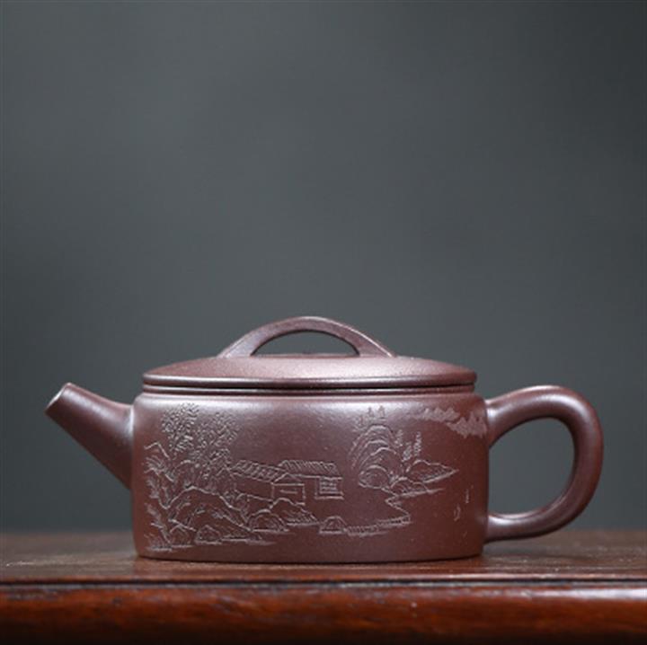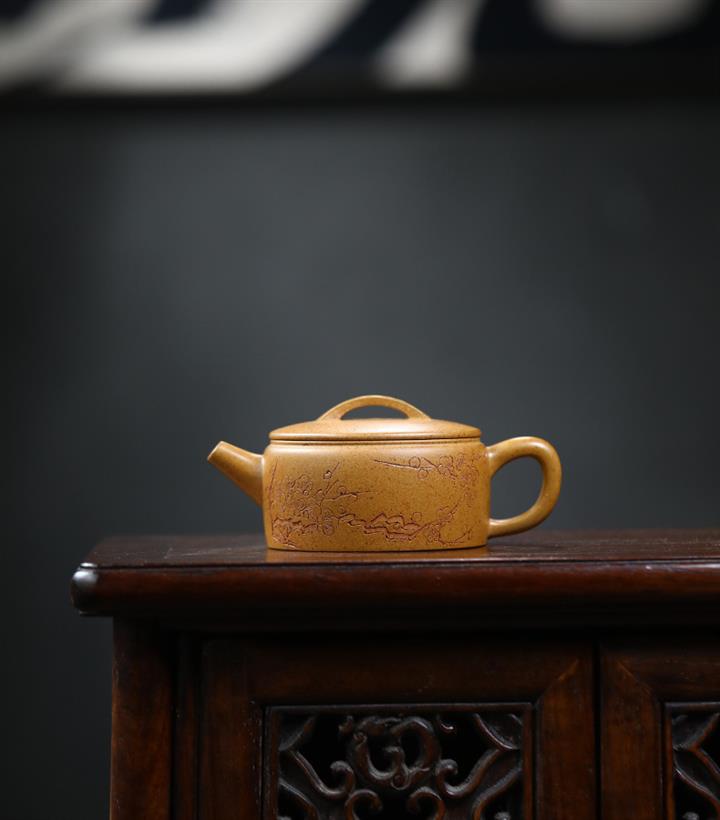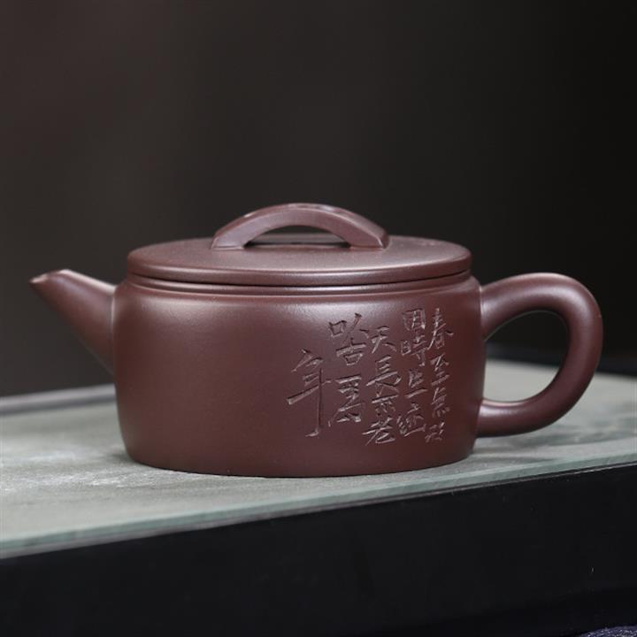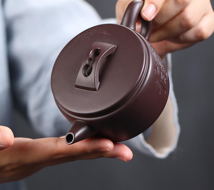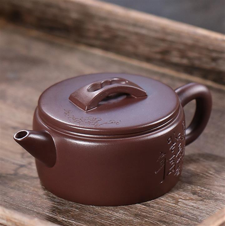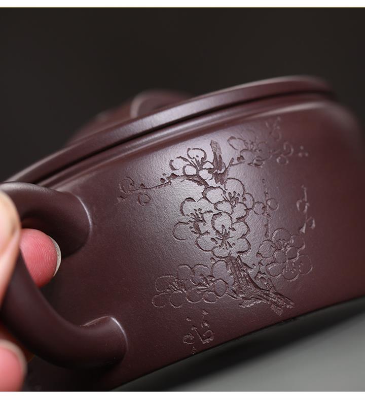 200cc原礦紫泥刻繪梅香漢瓦茶壺POT8049