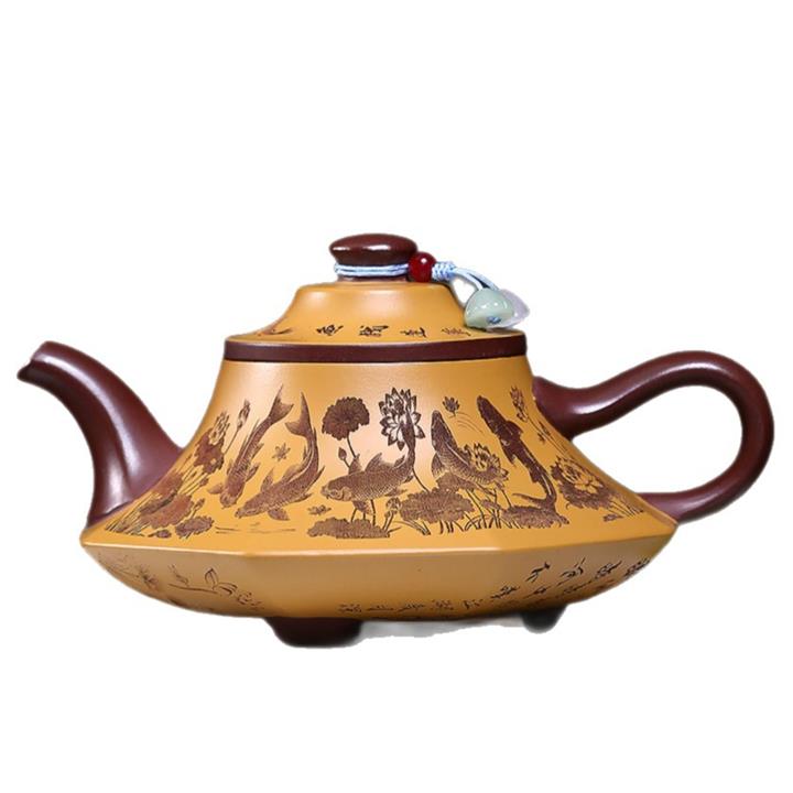 570cc原礦石黃泥滿刻鴻福滿堂茶壺POT8060