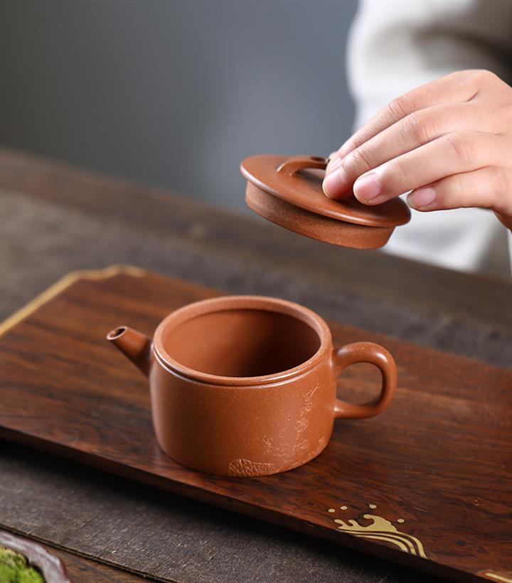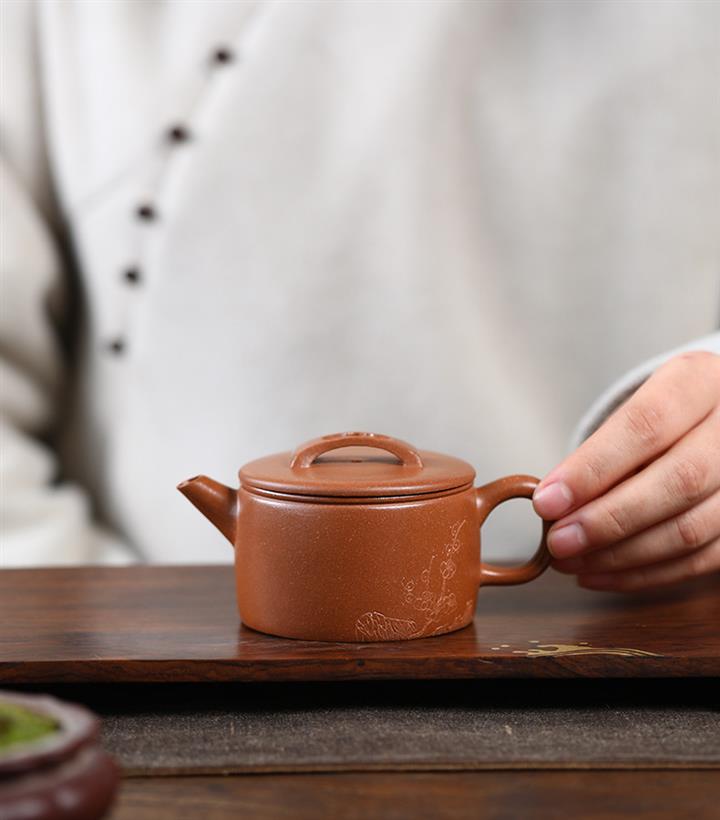 【泥料特點】砂土氣重,似淳實農民,日久使用,漸露鋒芒,養成變化,溫潤莊重。紫砂是壹種雙重氣孔結構的多孔性材質,氣孔微細,密度高。用紫砂壺沏茶,不失原味,且香不渙散,得茶之真香真味。紫砂使用越久,壺身色澤越發光亮照人,氣韻溫雅。紫砂壺長久使用器身會因撫摸擦拭,變得越發溫潤光澤。