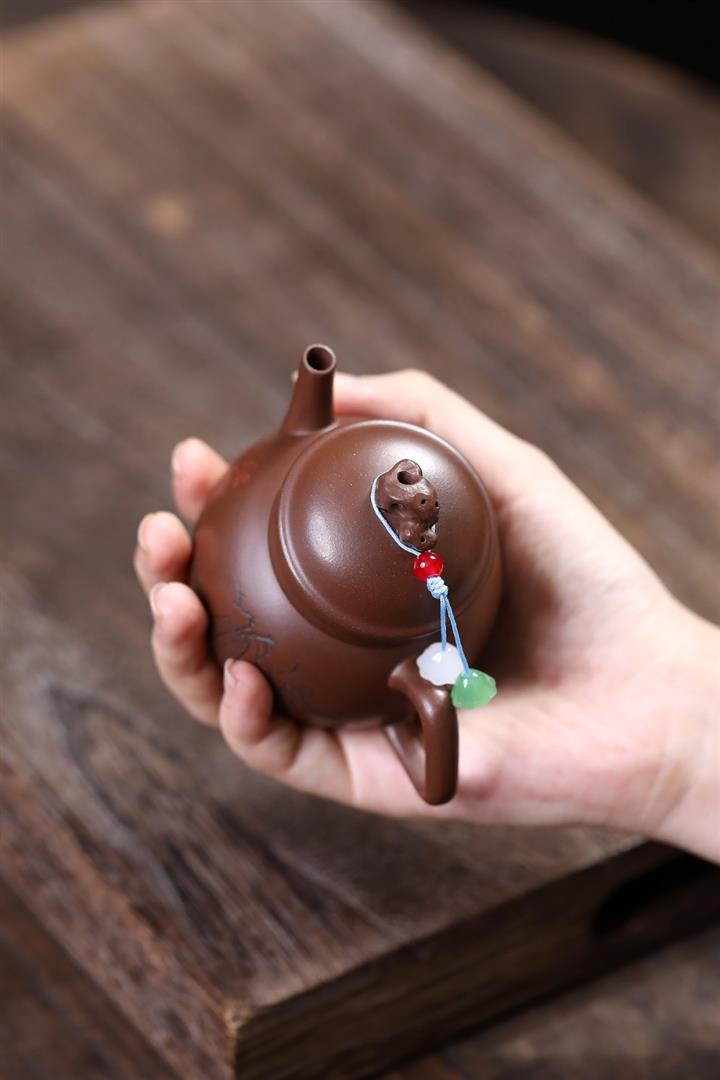 【作品介紹】此款壺形線條流暢,壺把,壺嘴,壺身壹氣呵成栩栩如生,是收藏把玩的好壺,泥料色澤古樸典雅,日久使用,漸露鋒芒,養成變化快,溫潤莊重,用其泡茶,使用的年代久,壺身就溫潤,泡出來的茶湯也就醇郁芳馨。