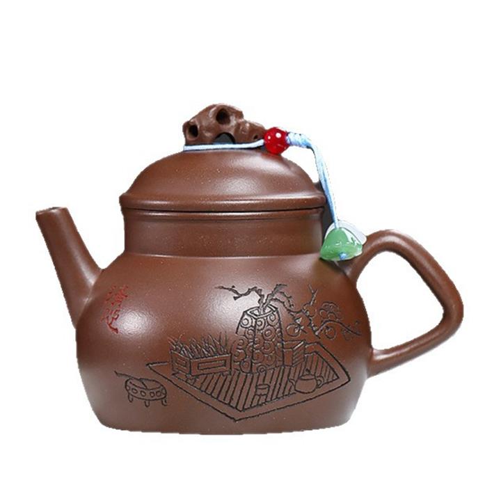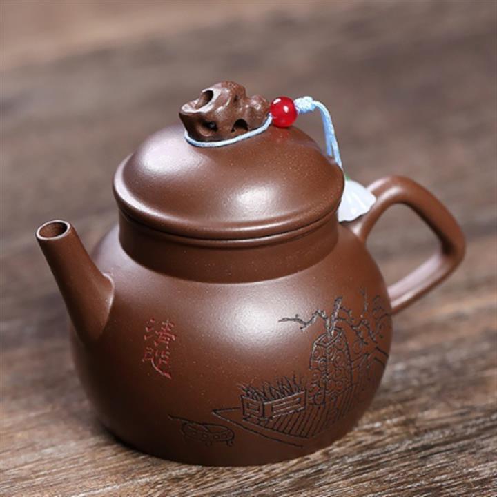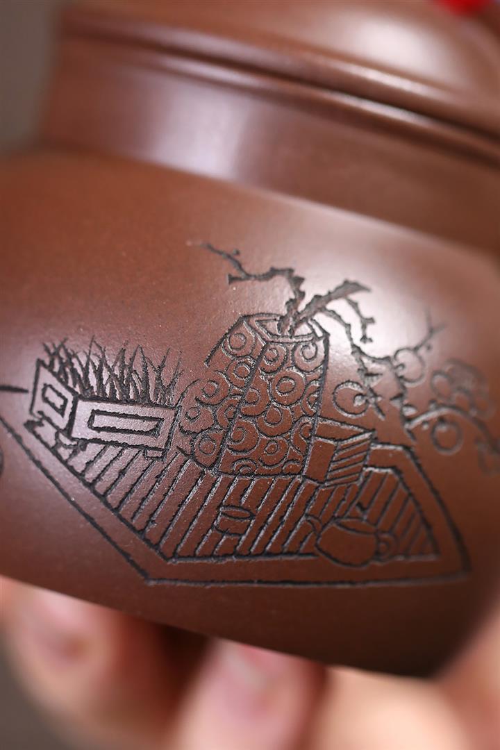240cc原礦紫泥滿刻伏虎漢瓦茶壺POT8070