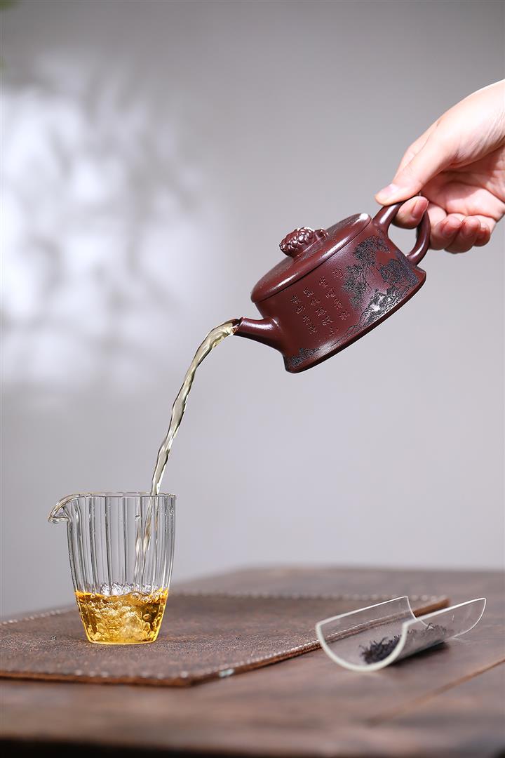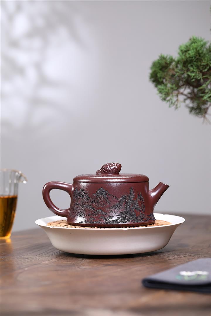 【泥料特點】砂土氣重,似淳實農民,日久使用,漸露鋒芒,養成變化,溫潤莊重。紫砂是壹種雙重氣孔結構的多孔性材質,氣孔微細,密度高。用紫砂壺沏茶,不失原味,且香不渙散,得茶之真香真味。紫砂使用越久,壺身色澤越發光亮照人,氣韻溫雅。紫砂壺長久使用器身會因撫摸擦拭,變得越發溫潤光澤。