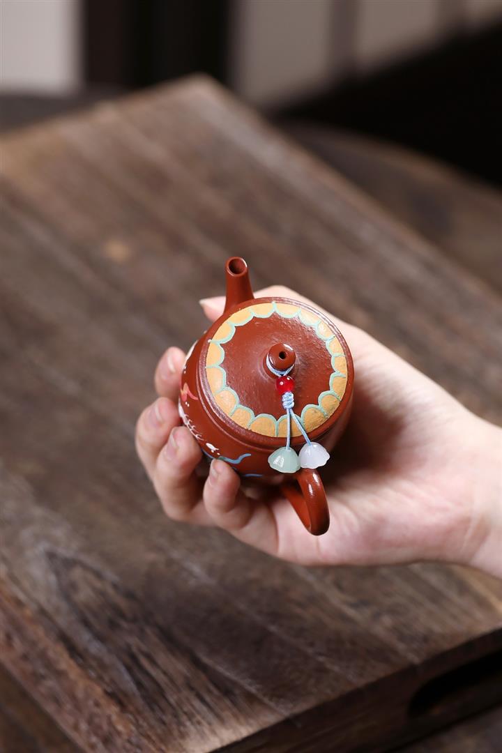 【泥料特點】砂土氣重,似淳實農民,日久使用,漸露鋒芒,養成變化,溫潤莊重。紫砂是壹種雙重氣孔結構的多孔性材質,氣孔微細,密度高。用紫砂壺沏茶,不失原味,且香不渙散,得茶之真香真味。紫砂使用越久,壺身色澤越發光亮照人,氣韻溫雅。紫砂壺長久使用器身會因撫摸擦拭,變得越發溫潤光澤。