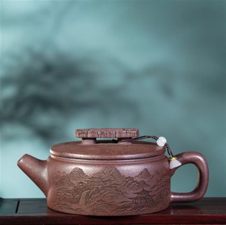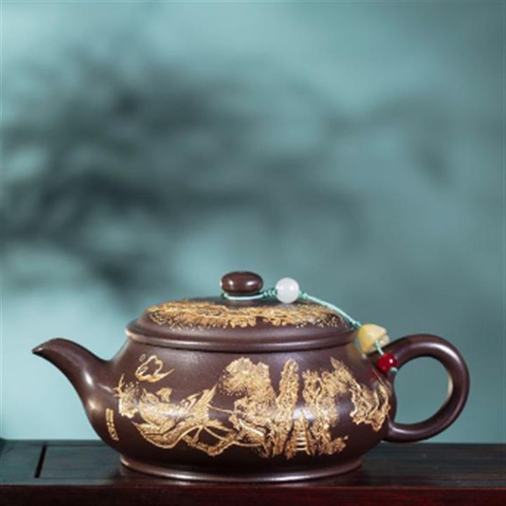 200cc原礦紫泥金刻漢瓦茶壺POT8098