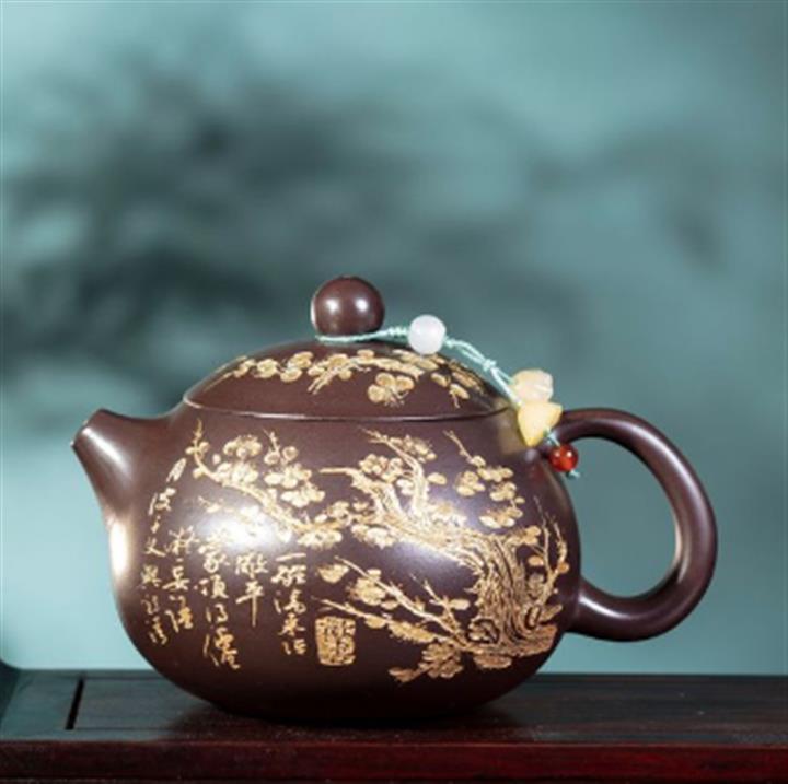 310cc百目紫泥金刻梅花西施茶壺POT8101
