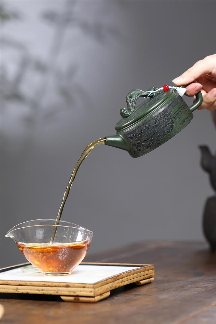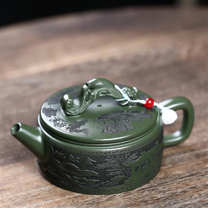 280cc原礦綠泥金池躍鯉漢瓦壺POT8087
