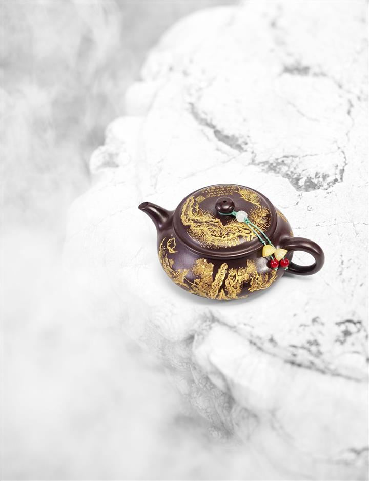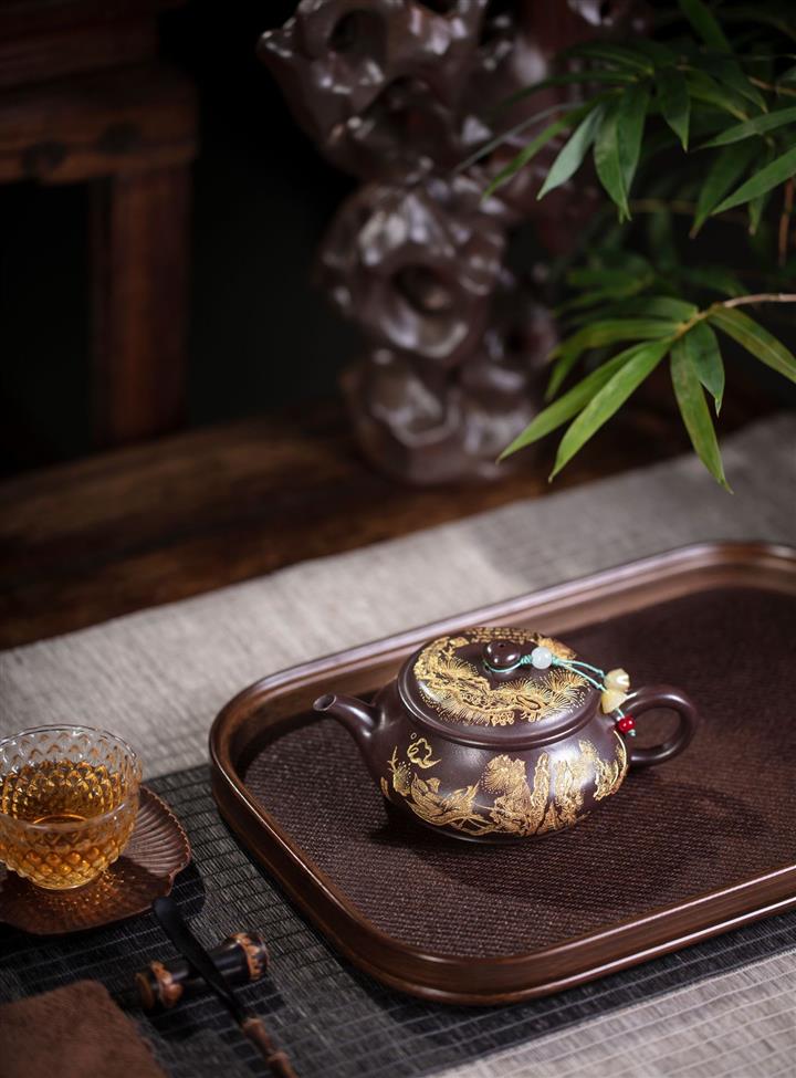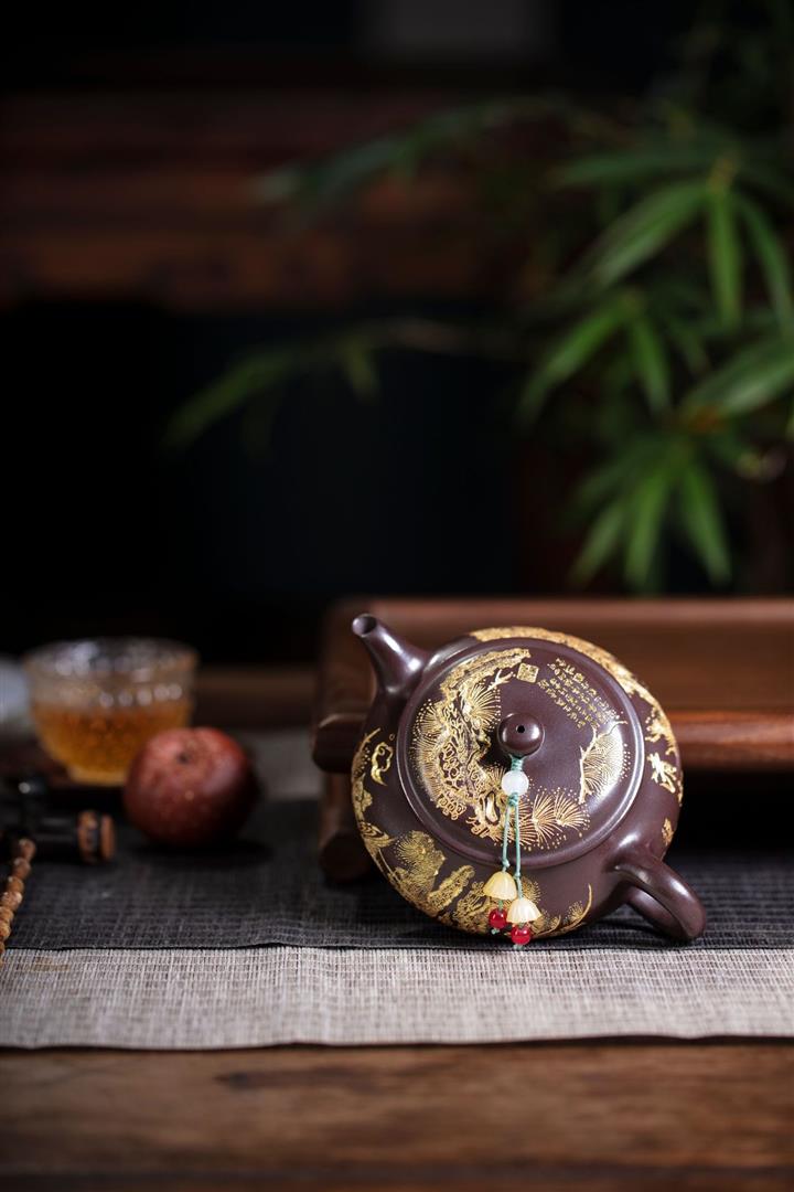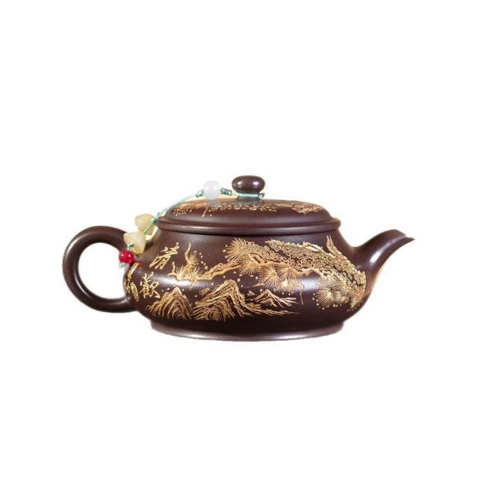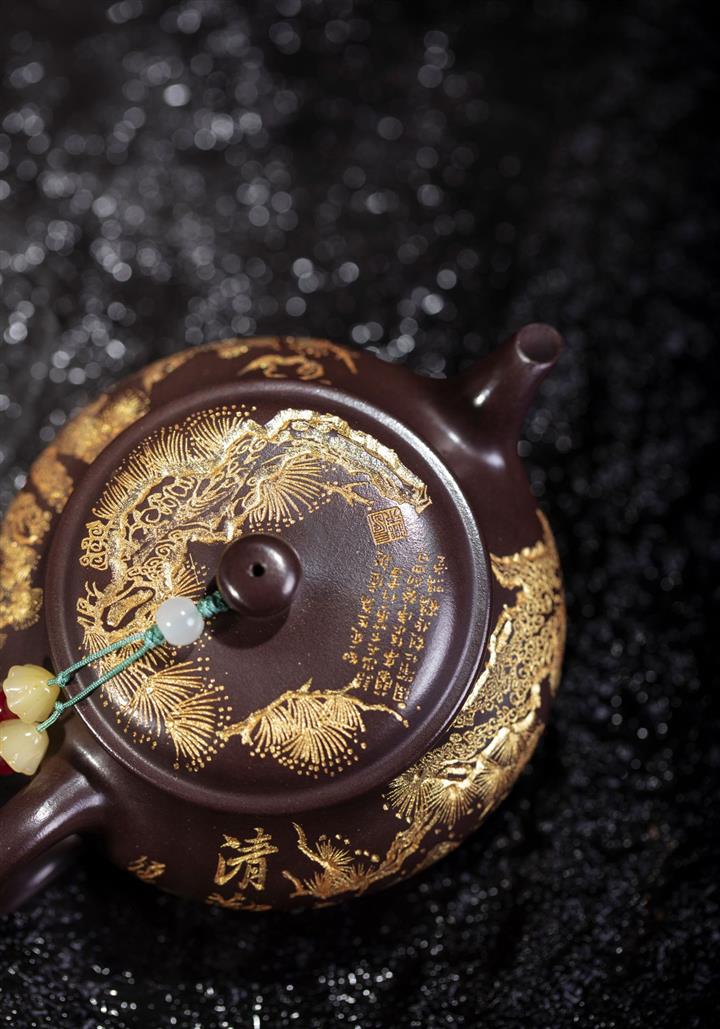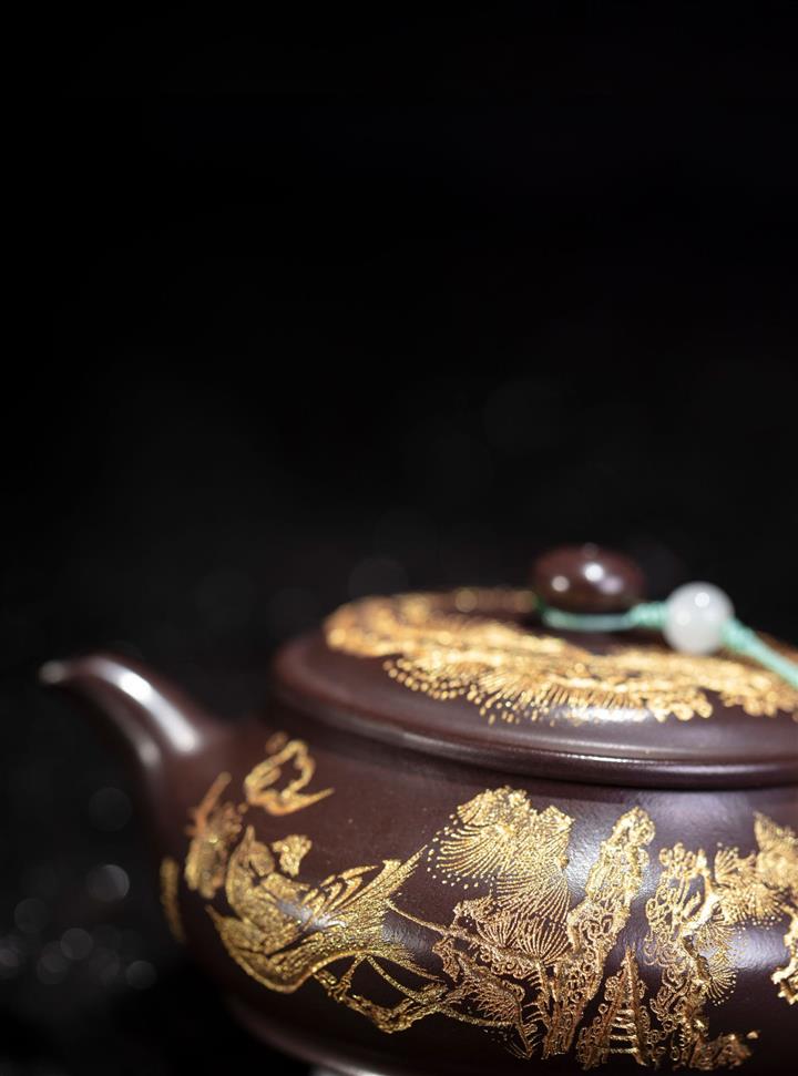 200cc原礦百目紫泥金刻明爐茶壺POT8100