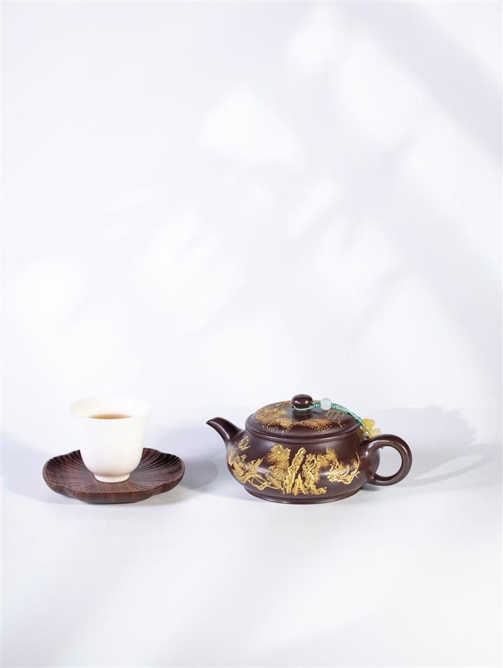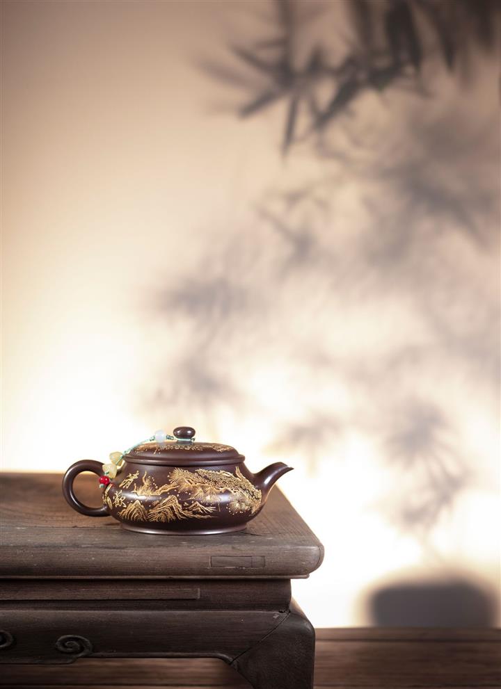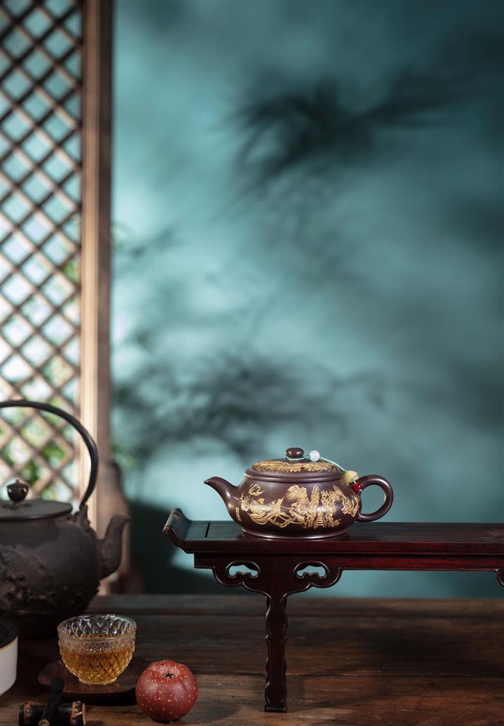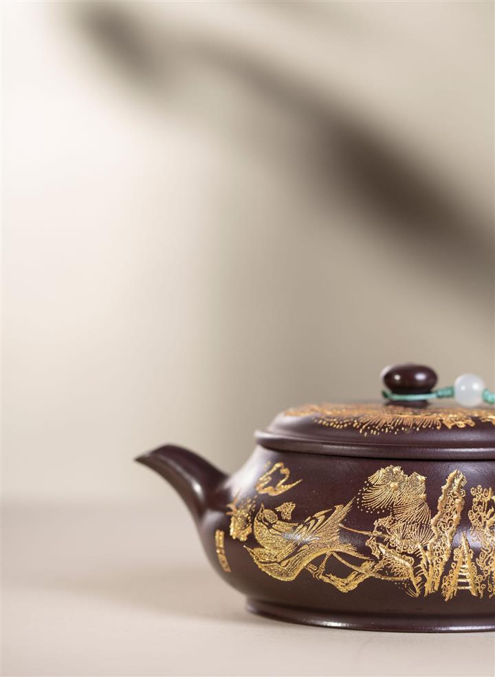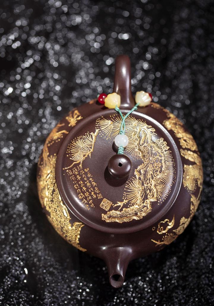 200cc原礦百目紫泥金刻明爐茶壺POT8100