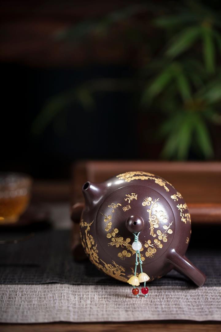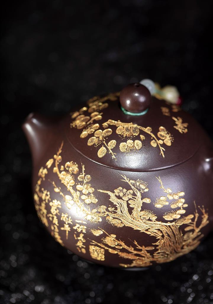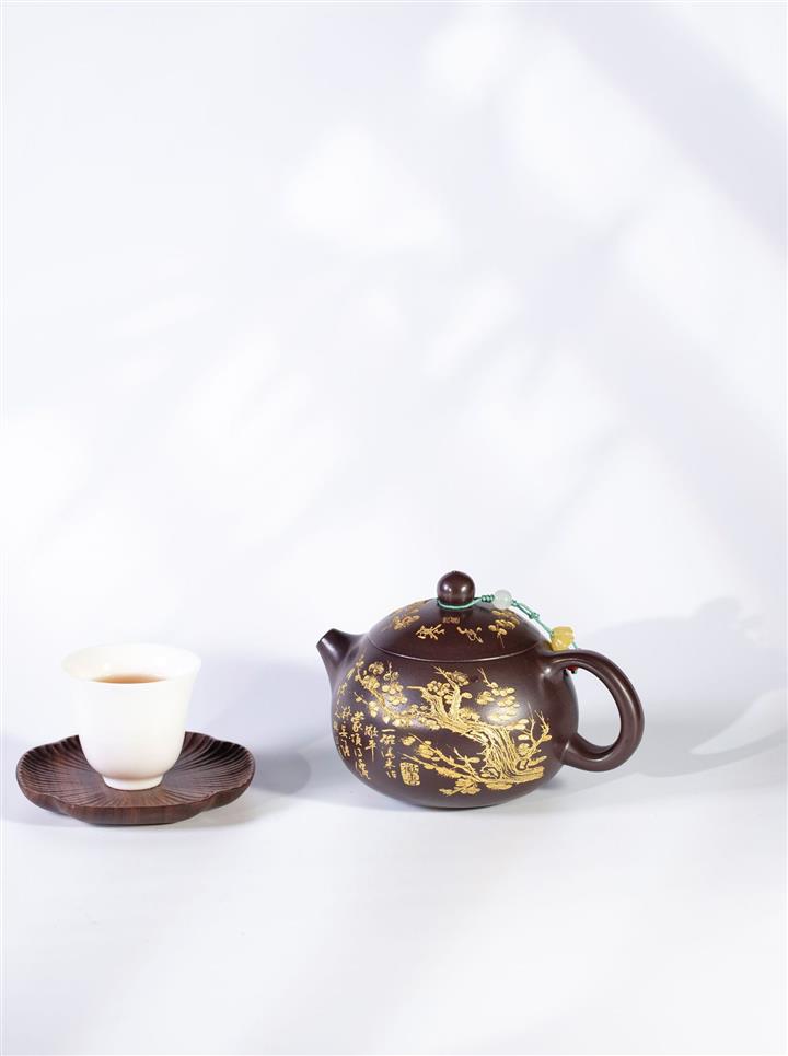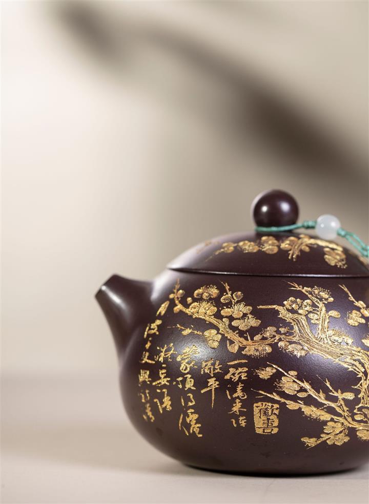 310cc百目紫泥金刻梅花西施茶壺POT8101