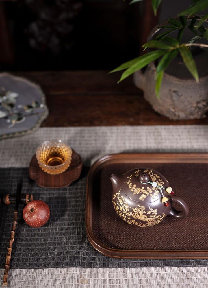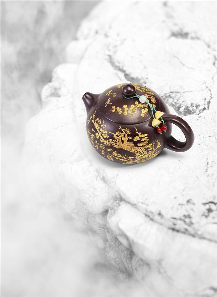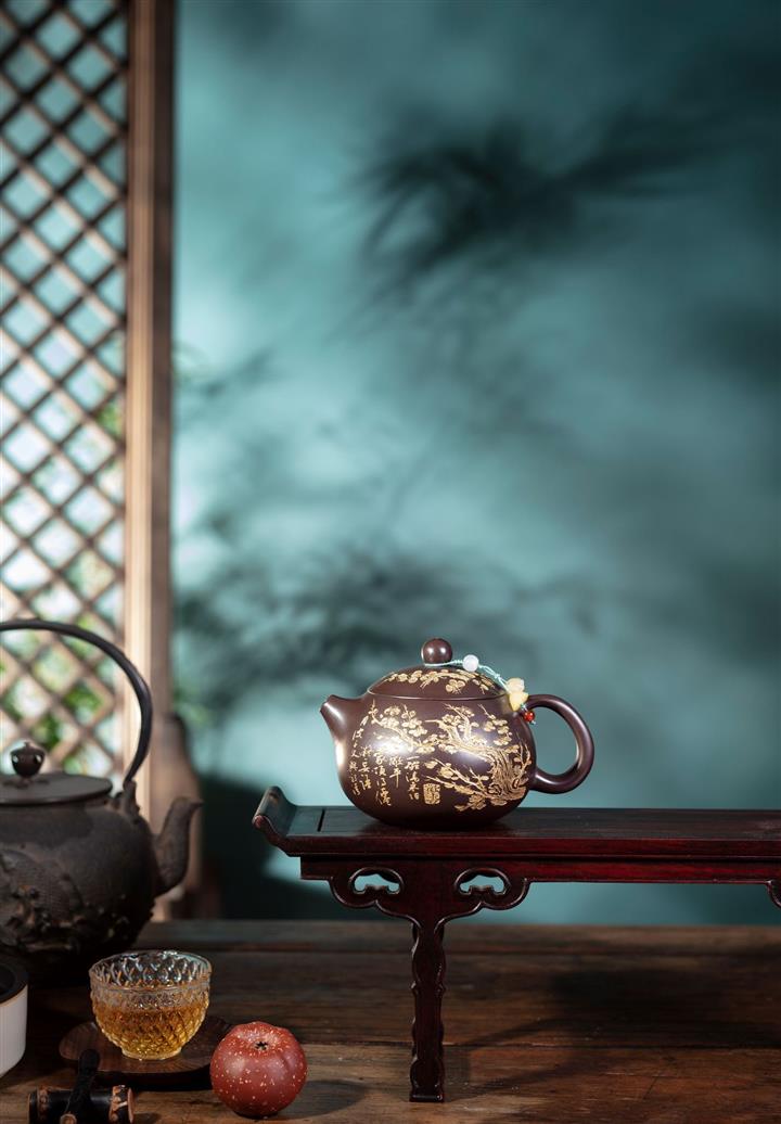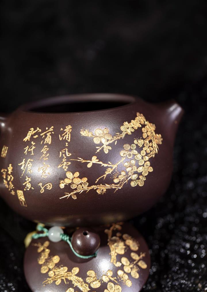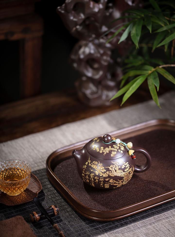 310cc百目紫泥金刻梅花西施茶壺POT8101