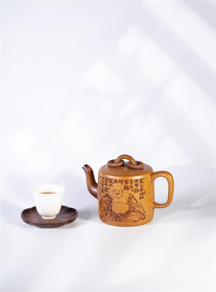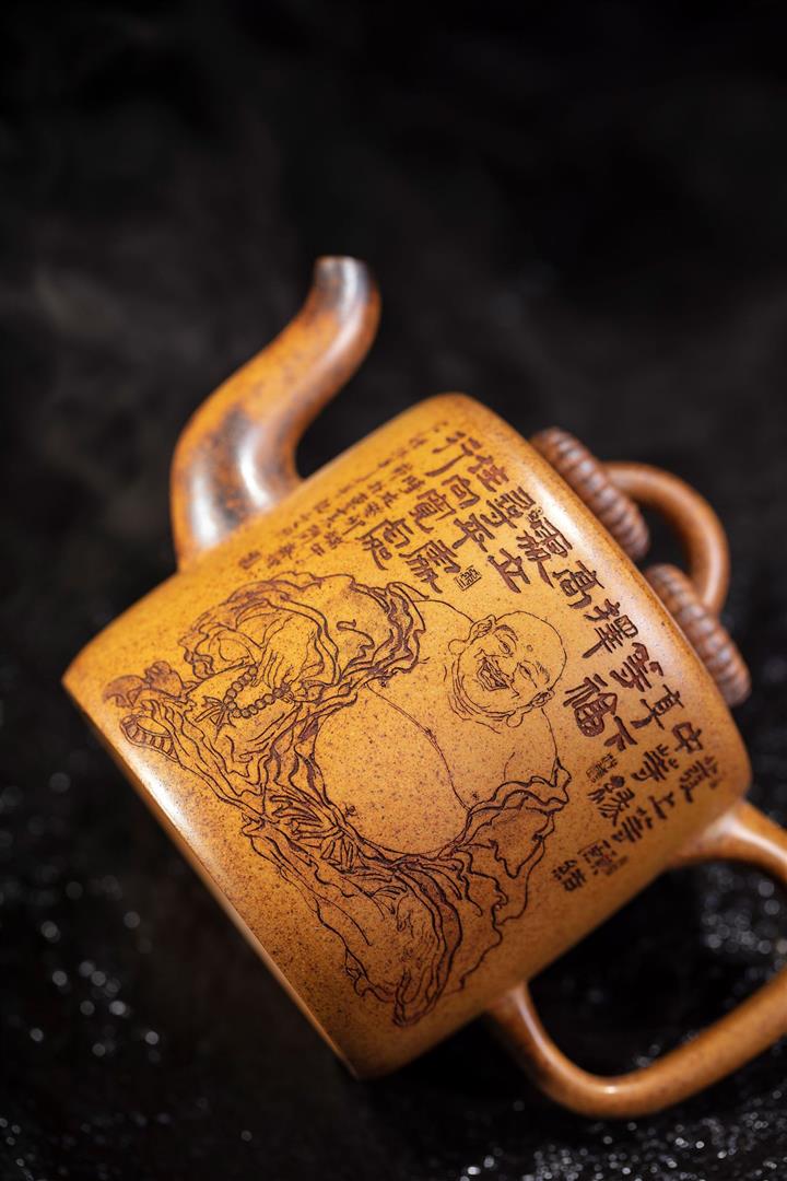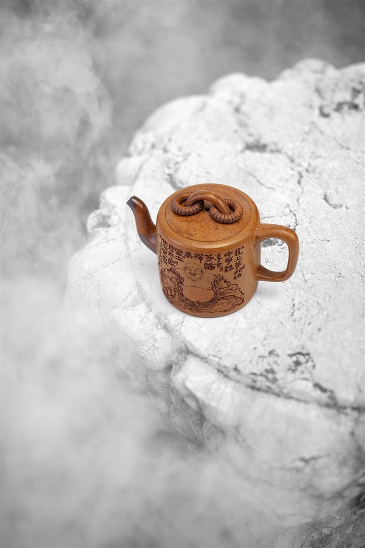 450cc原礦紫泥滿刻大德鐘壺POT8116