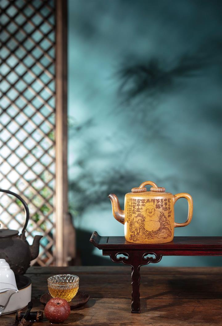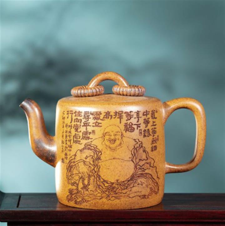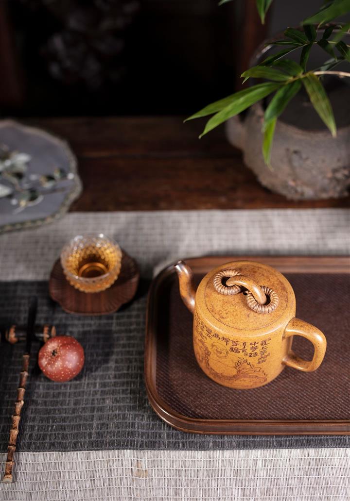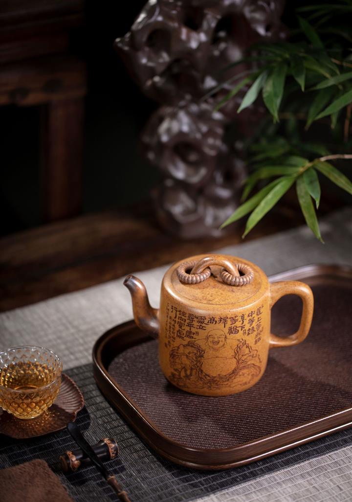 【泥料特點】砂土氣重,似淳實農民,日久使用,漸露鋒芒,養成變化,溫潤莊重。紫砂是壹種雙重氣孔結構的多孔性材質,氣孔微細,密度高。用紫砂壺沏茶,不失原味,且香不渙散,得茶之真香真味。紫砂使用越久,壺身色澤越發光亮照人,氣韻溫雅。紫砂壺長久使用器身會因撫摸擦拭,變得越發溫潤光澤。