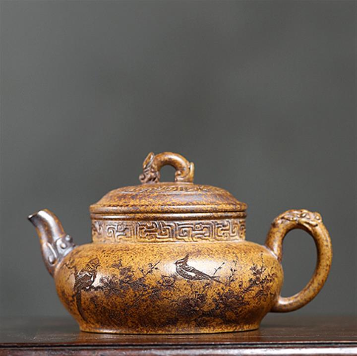 【作品介紹】此款壺形線條流暢,壺把,壺嘴,壺身壹氣呵成栩栩如生,是收藏把玩的好壺,泥料色澤古樸典雅,日久使用,漸露鋒芒,養成變化快,溫潤莊重,用其泡茶,使用的年代久,壺身就溫潤,泡出來的茶湯也就醇郁芳馨。