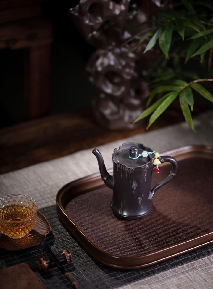 150cc玄鐵石黃黑料捂灰竹段茶壺POT8103