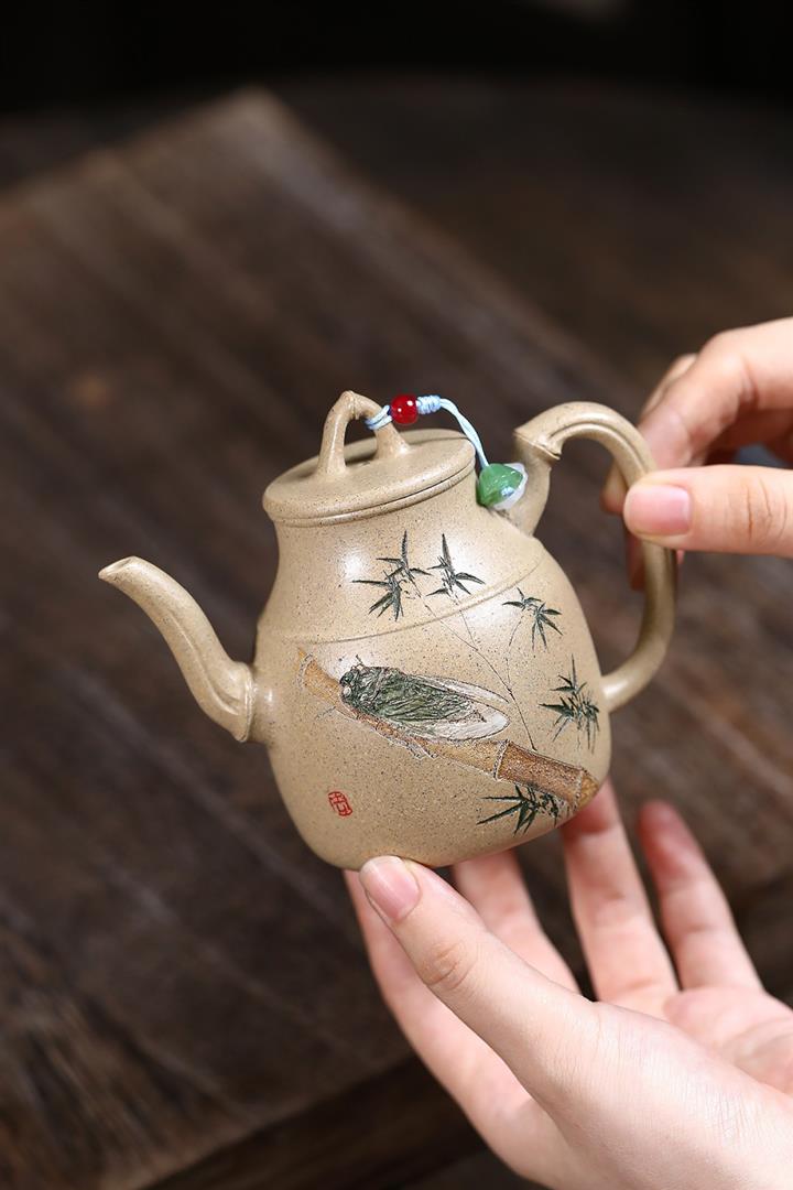 【作品介紹】此款壺形線條流暢,壺把,壺嘴,壺身壹氣呵成栩栩如生,是收藏把玩的好壺,泥料色澤古樸典雅,日久使用,漸露鋒芒,養成變化快,溫潤莊重,用其泡茶,使用的年代久,壺身就溫潤,泡出來的茶湯也就醇郁芳馨。