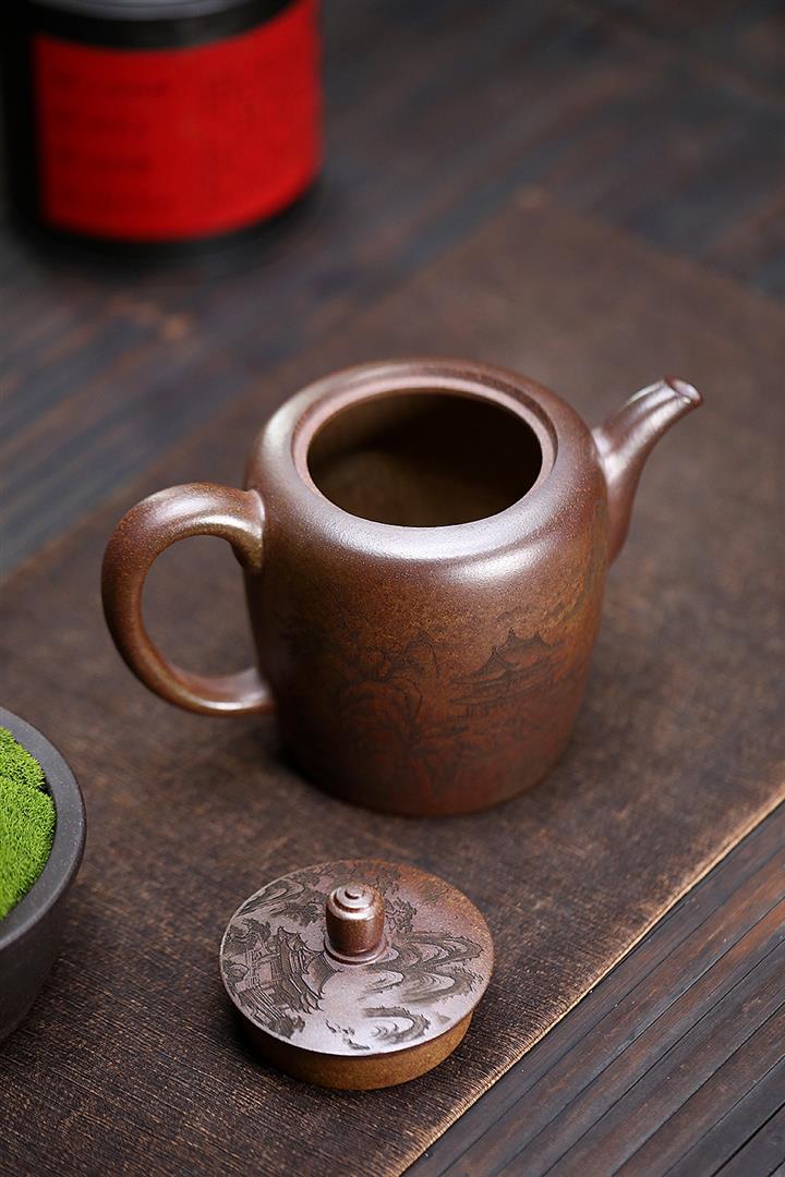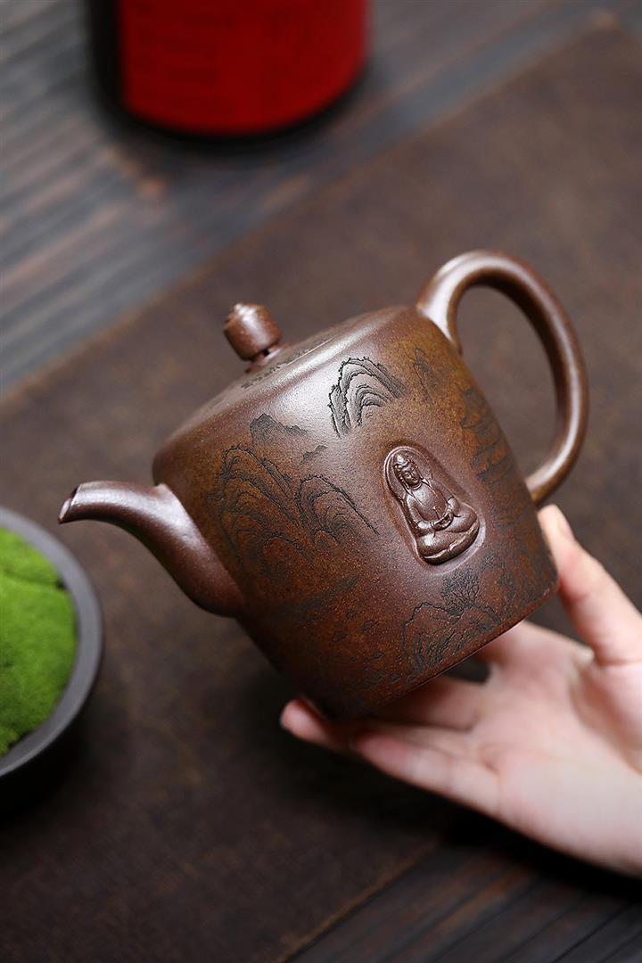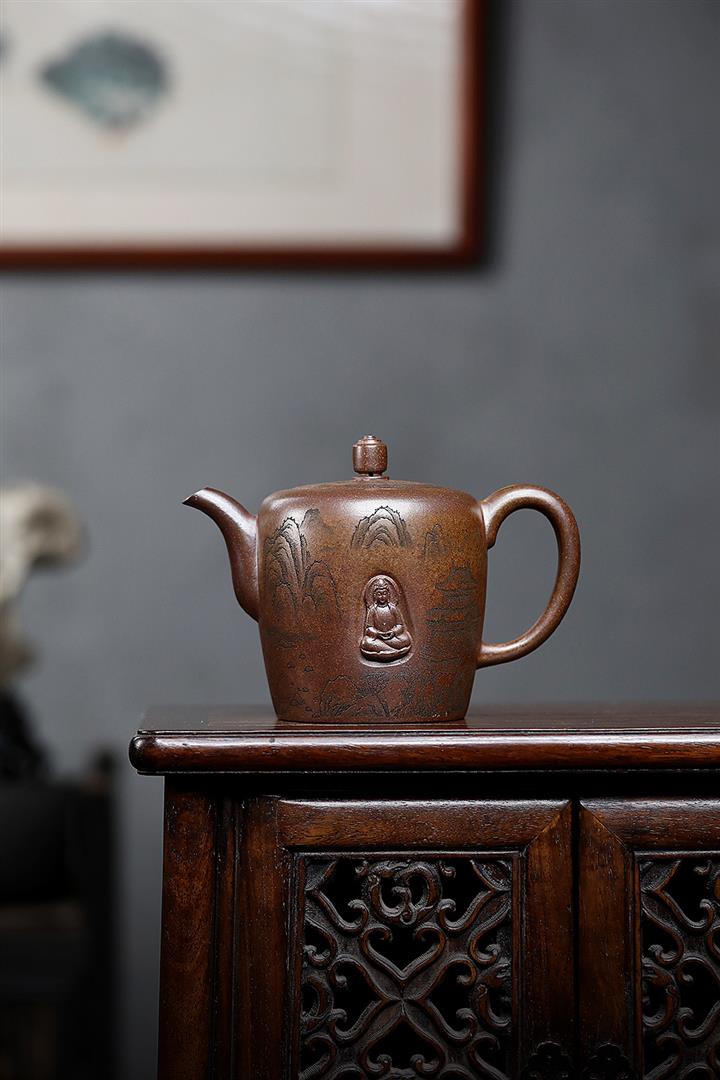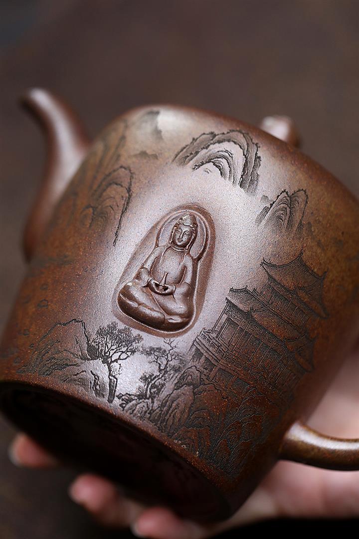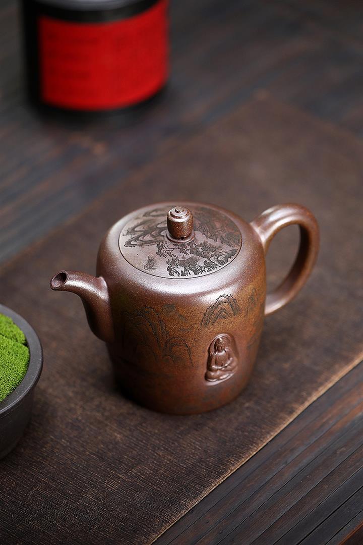 450cc原礦紫泥滿刻大德鐘壺POT8116