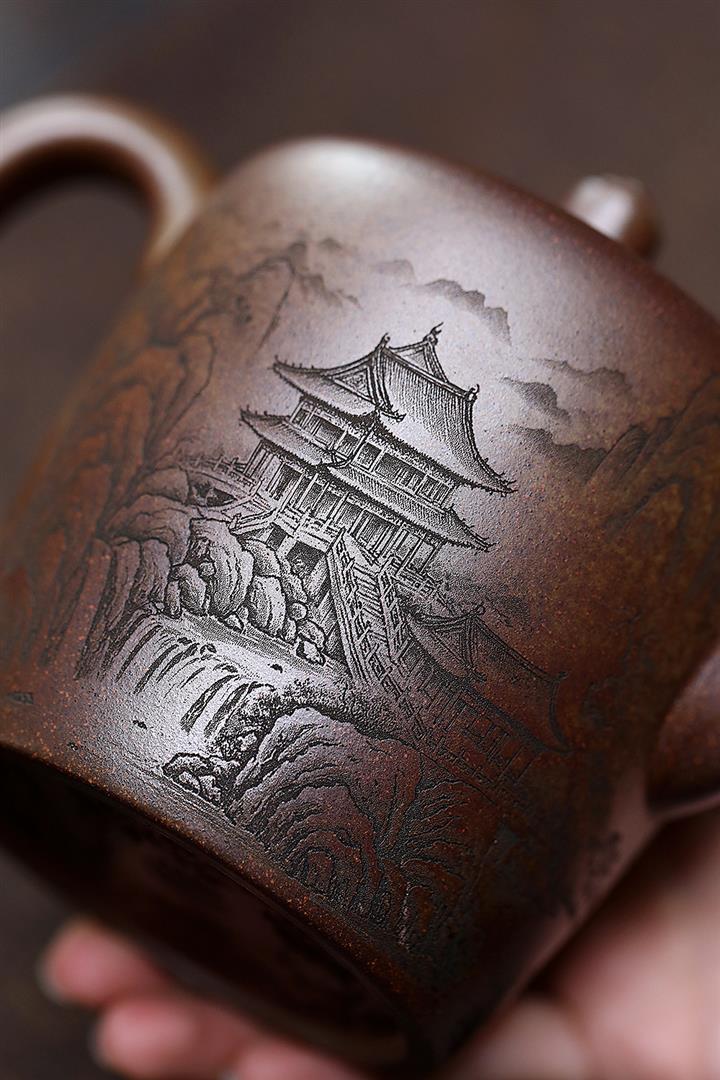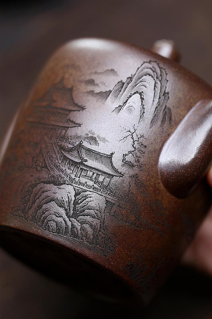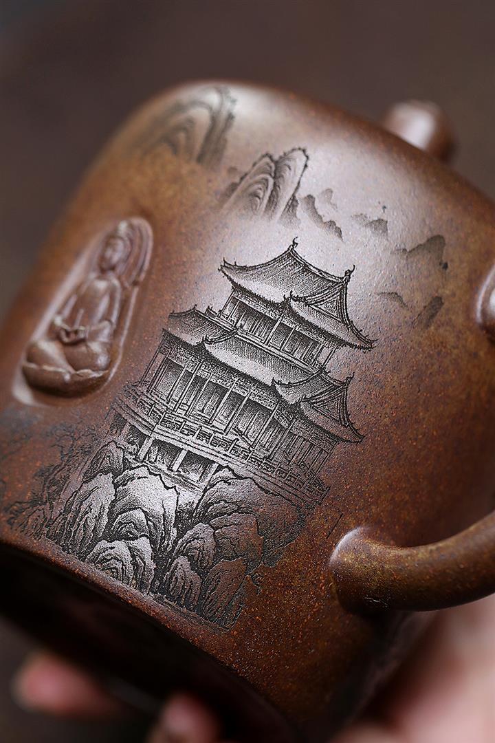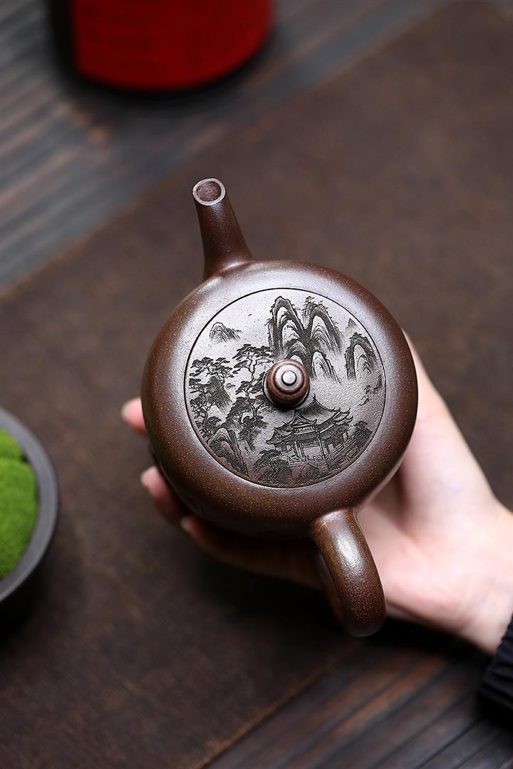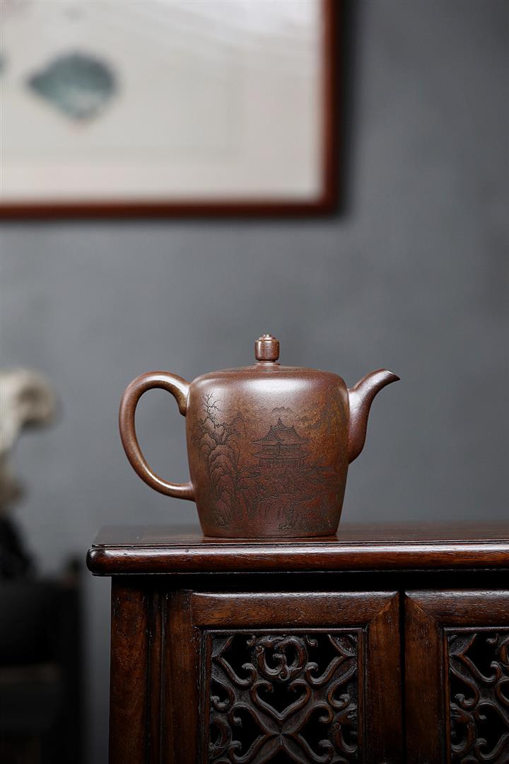 450cc原礦紫泥滿刻大德鐘壺POT8116