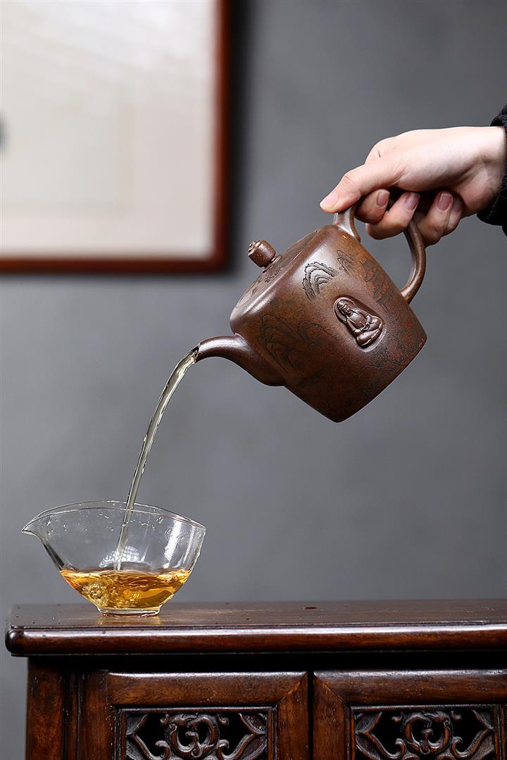 【泥料特點】砂土氣重,似淳實農民,日久使用,漸露鋒芒,養成變化,溫潤莊重。紫砂是壹種雙重氣孔結構的多孔性材質,氣孔微細,密度高。用紫砂壺沏茶,不失原味,且香不渙散,得茶之真香真味。紫砂使用越久,壺身色澤越發光亮照人,氣韻溫雅。紫砂壺長久使用器身會因撫摸擦拭,變得越發溫潤光澤。